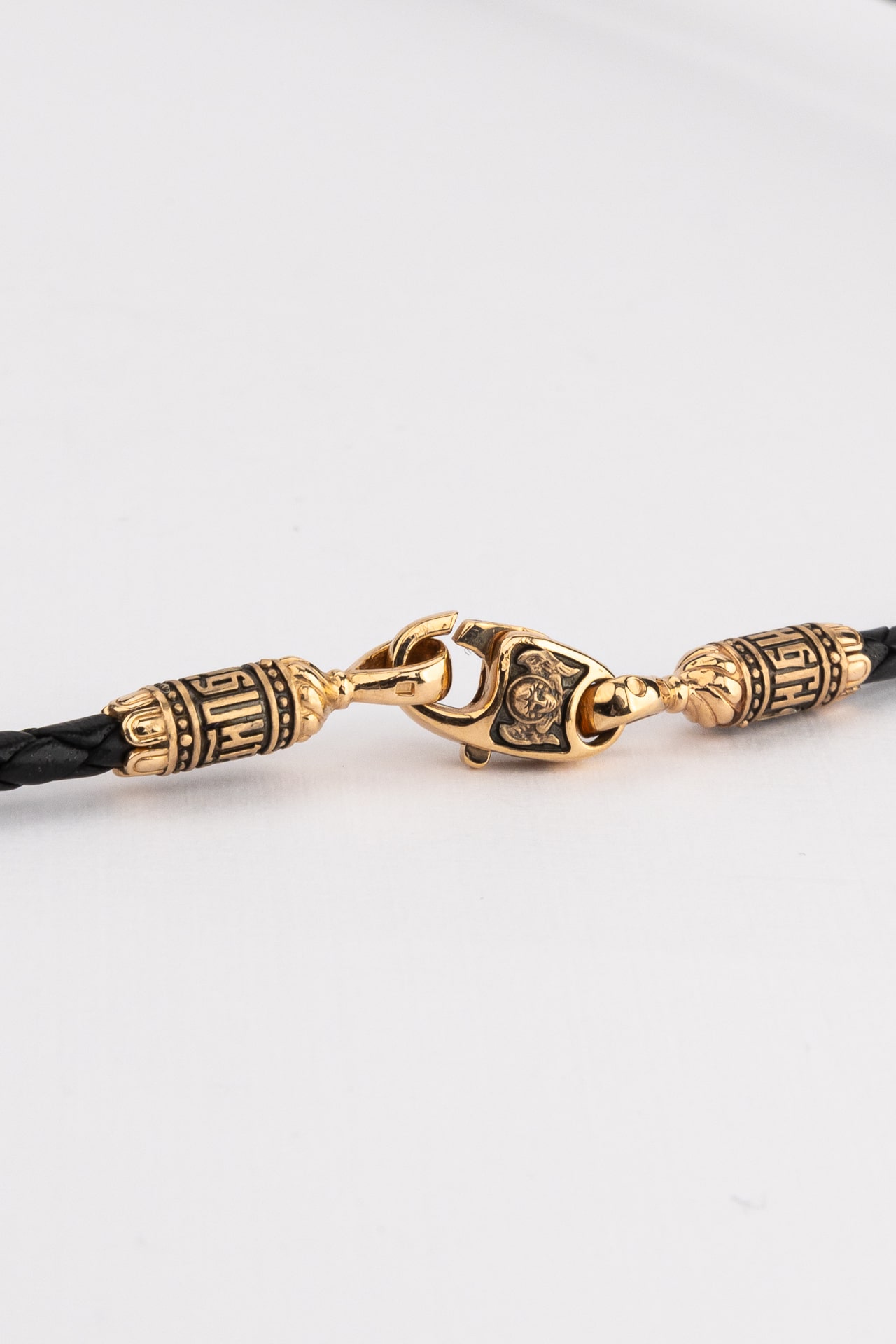 Цепь-шнурок кожа из красного золота 585 пробы c кожаным шнурком
