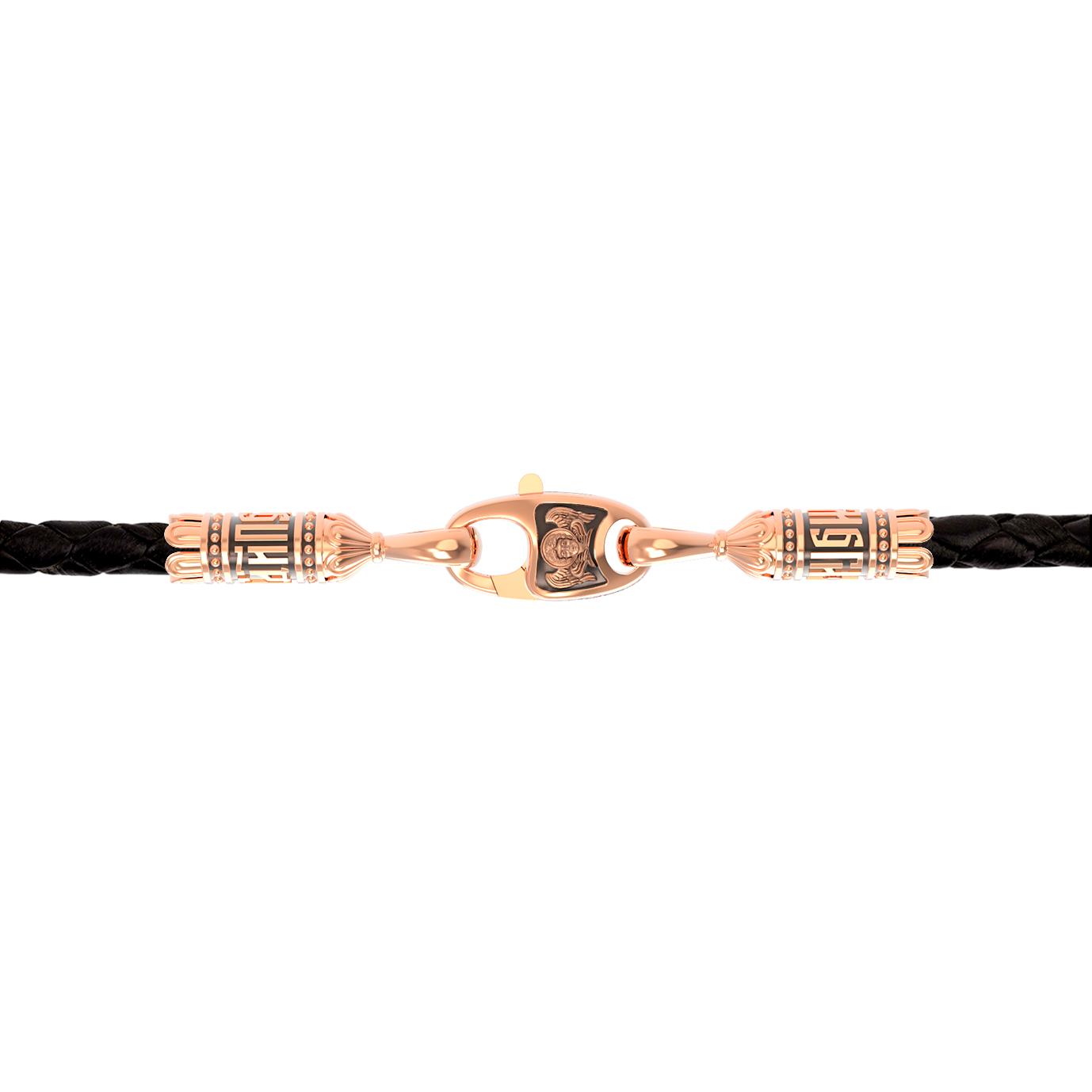 На концах цепи-шнурка расположены концевики с надписью: «Спаси и сохрани». Соединяет концевики замочек-карабин в форме рыбки. На замочке изображен шестикрылый Серафим.