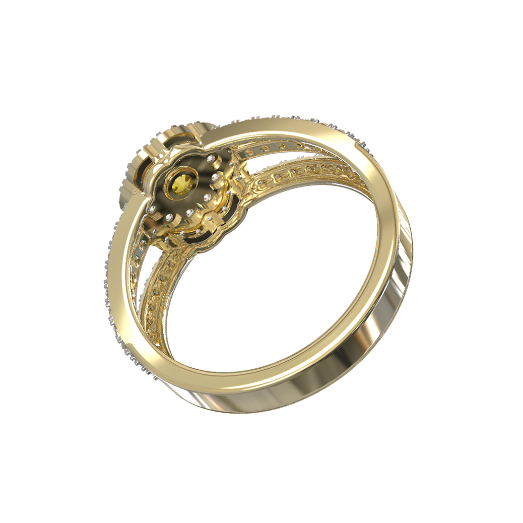 Кольцо из лимонного золота c бриллиантами и сапфиром