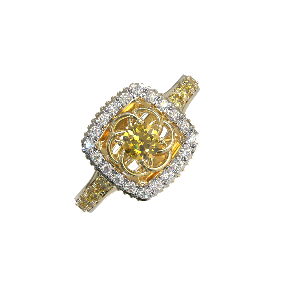 Роскошное кольцо из лимонного золота 585 пробы из коллекции De Luxe Бриллианты — Citrino станет воплощением вашего безупречного вкуса. Этот ювелирный шедевр привлекает внимание своим сложным дизайнерским исполнением, сочетающим в себе благородный металл и игру драгоценных камней. В центре композиции расположен яркий сапфир желтого цвета, окруженный изящным ажурным плетением, которое придает украшению объем и неповторимый шарм. Внешний контур украшен сверкающими бриллиантами белого цвета, создающими эффектный контраст и подчеркивающими глубину основного камня.