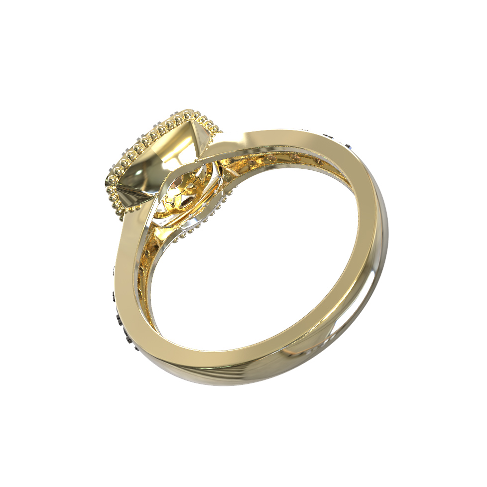 Кольцо из лимонного золота c бриллиантами и сапфиром