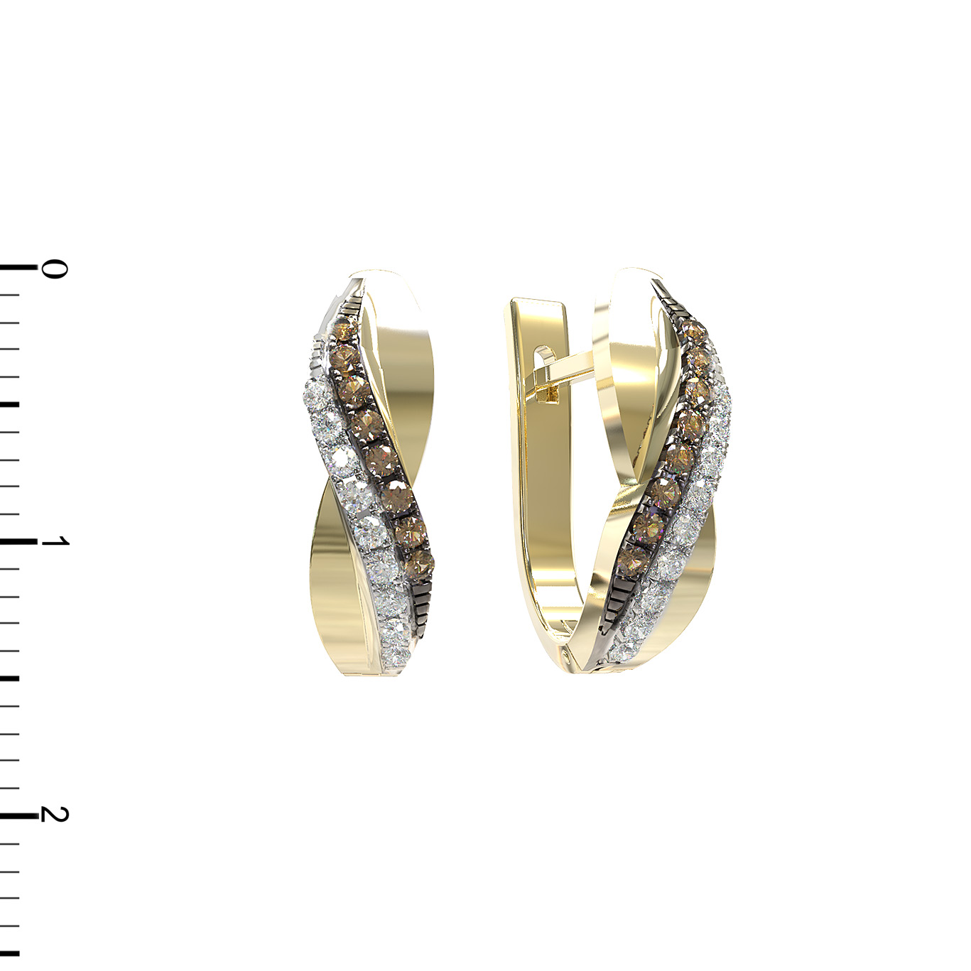 Элегантные и выразительные серьги из коллекции De Luxe Бриллианты — Espresso станут безупречным дополнением вашего образа. Это украшение выполнено из благородного лимонного золота 585 пробы, чей теплый и солнечный оттенок идеально подчеркивает роскошное сияние драгоценных камней. Особую глубину дизайну придает искусная инкрустация: в изделии использовано 34 бриллианта круглой формы, которые создают завораживающую игру света.