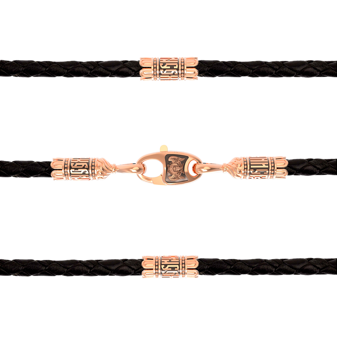 Цепь-шнурок кожа из красного золота 585 пробы c кожаным шнурком