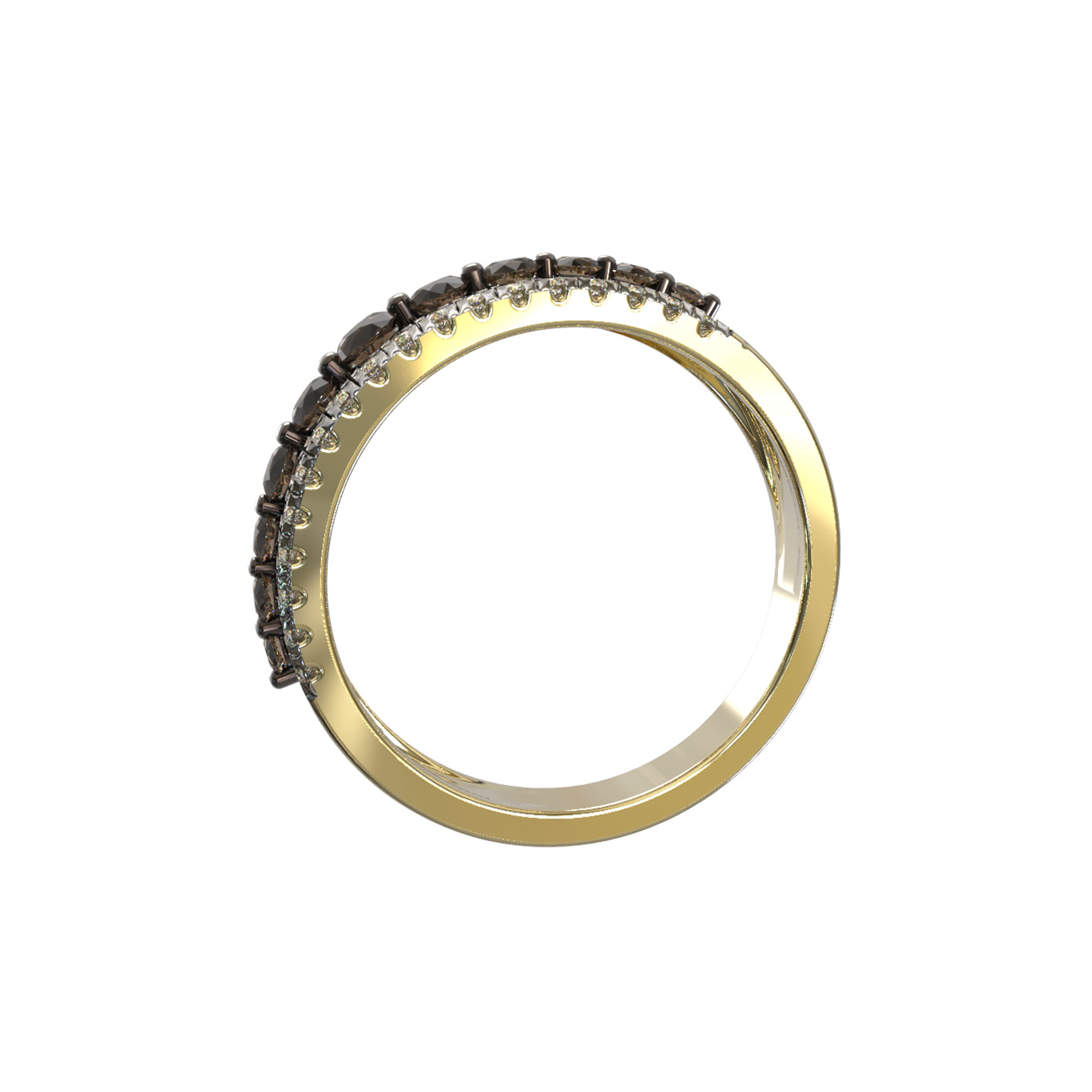 Всего в инкрустации использовано 47 бриллиантов круглой формы. Особую притягательность украшению придает сочетание классических прозрачных вставок с бриллиантами коричневого цвета, которые создают глубокий и теплый контраст на фоне лимонного золота. Такая палитра делает аксессуар универсальным дополнением к любому стилю, от вечернего наряда до элегантного делового костюма.