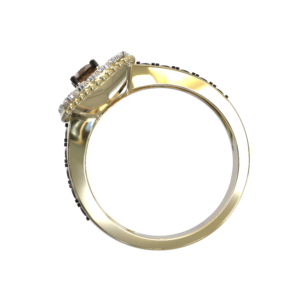 Общее количество бриллиантов в изделии составляет 31 штуку, что придает кольцу особенное сияние и визуальный объем. Сочетание лимонного оттенка золота с теплыми кофейными тонами камней делает украшение универсальным и запоминающимся. Лаконичный, но при этом сложный дизайн позволяет носить данное кольцо как мужчинам, так и женщинам — оно подчеркнет индивидуальность любого образа. Изделие прекрасно сочетается с другими украшениями бренда, позволяя создавать полноценные ювелирные комплекты.