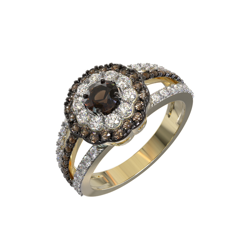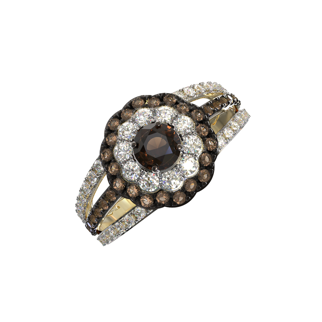 Кольцо из лимонного золота 585 пробы c бриллиантами