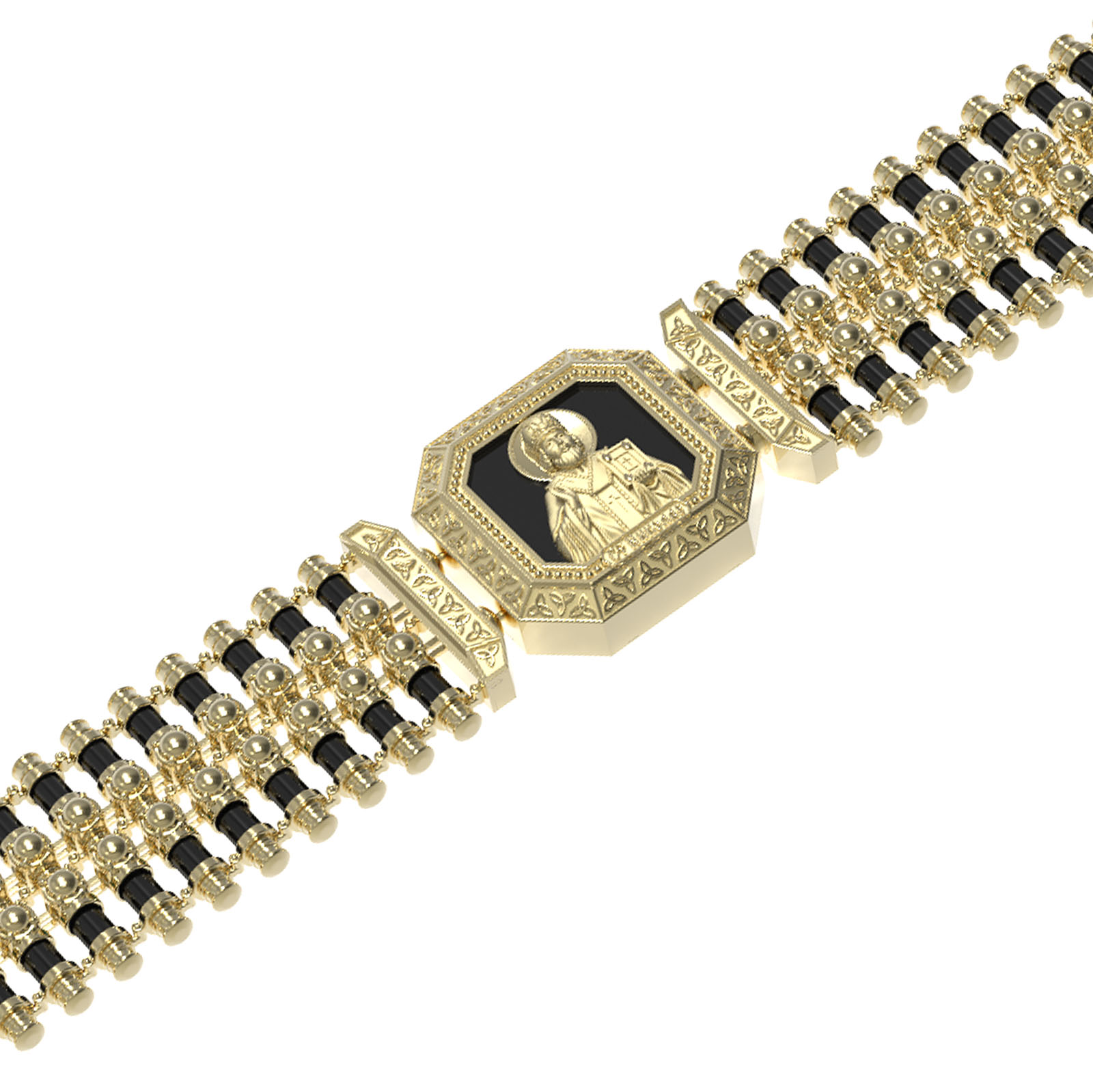 Лицевую сторону основного звена возглавляет икона Святителя Николая Чудотворца. Живший в III веке епископ Ликийского города Миры — самый почитаемый святой не только в России, но и во всем мире. Николай Чудотворец, помощник в делах, покровитель учащихся, утешитель обиженных и нуждающихся, целитель самых страшных и тяжелых недугов, предстатель и молитвенник за людей перед Богом. Также Святитель Николай Чудотворец известен своими молитвами за путешественников, когда непрестанный ветер и бушующие волны утихают и корабль заходит в спокойную гавань.