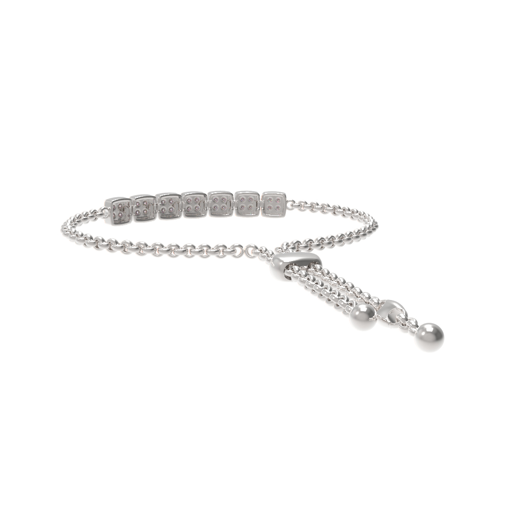 Центральная часть браслета украшена 28 бриллиантами круглой формы. Белые вставки гармонично сочетаются с холодным благородным блеском белого золота, создавая роскошную игру света при каждом движении. Особая конструкция изделия позволяет легко регулировать размер, что обеспечивает идеальную посадку на запястье.