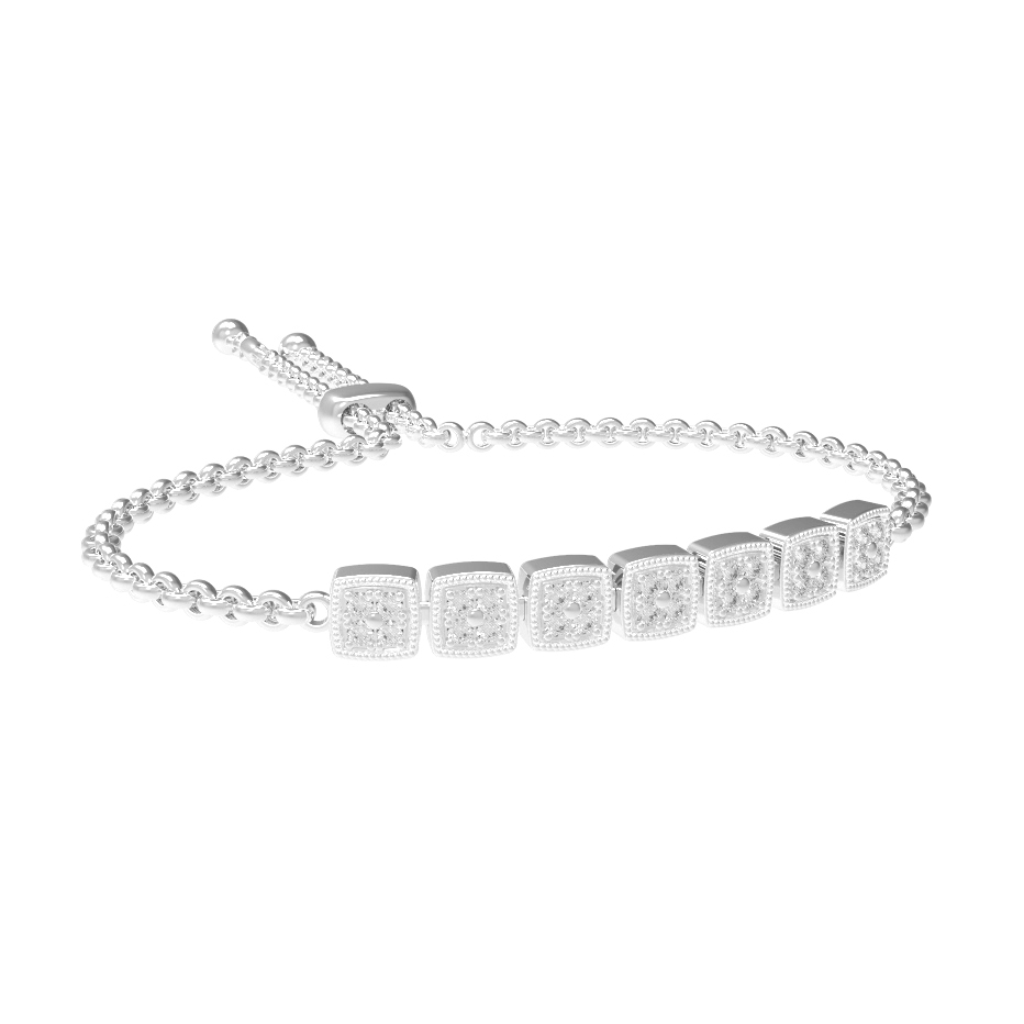 Откройте для себя воплощение современной элегантности с браслетом из белого золота 585 пробы из коллекции De Luxe Бриллианты — Quattro. Это изысканное ювелирное украшение объединяет в себе безупречный стиль и премиальное качество исполнения. Дизайн модели строится на контрасте нежного, гибкого плетения цепи и выразительных декоративных элементов квадратной формы, которые притягивают взгляд своим блеском.