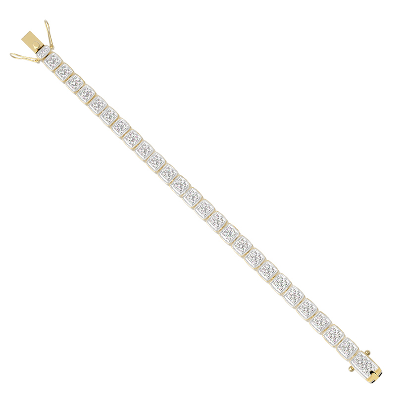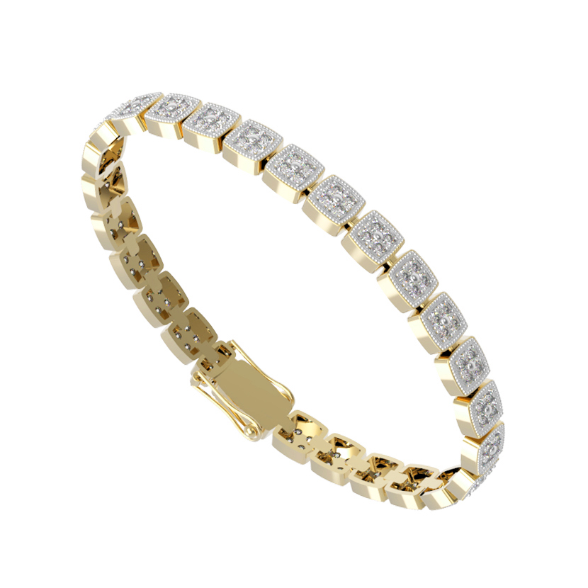 Роскошный браслет из коллекции De Luxe Бриллианты — Quattro станет достойным дополнением вашего ювелирного гардероба. Это украшение выполнено из лимонного золота 585 пробы, чей благородный солнечный оттенок идеально подчеркивает сияние драгоценных камней. Особая эстетика изделия заключается в чередовании квадратных звеньев, создающих динамичный и современный облик.
