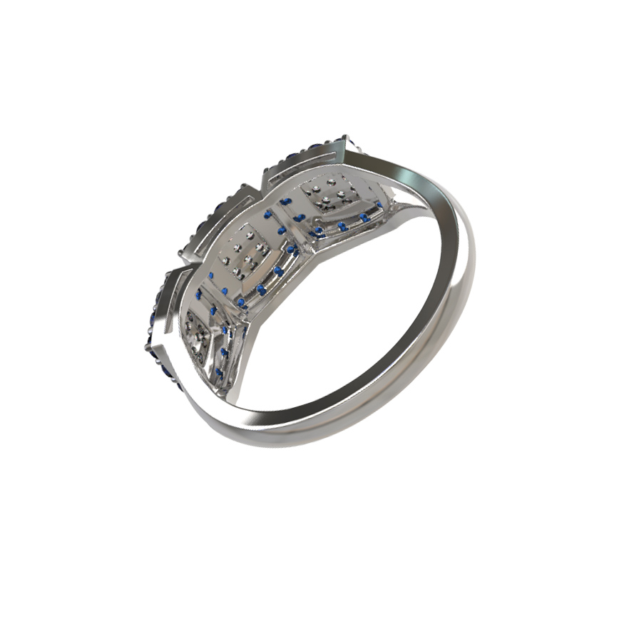 Центральная часть украшения декорирована 63 вставками круглой формы, где классические белые бриллианты подчеркивают глубокий синий цвет сапфиров. Это ювелирное изделие выполнено в холодном оттенке белого золота, что придает ему особый статус и делает универсальным украшением как для женщин, так и для мужчин. Изысканная игра света на гранях камней подчеркивает статус владельца.