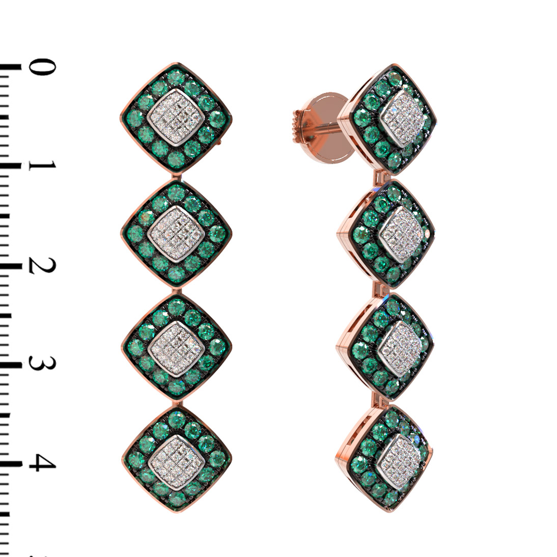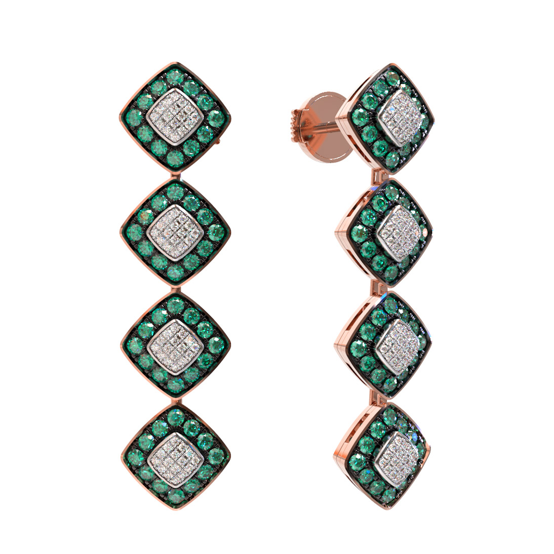 Серьги из красного золота 585 пробы c бриллиантами и изумрудом