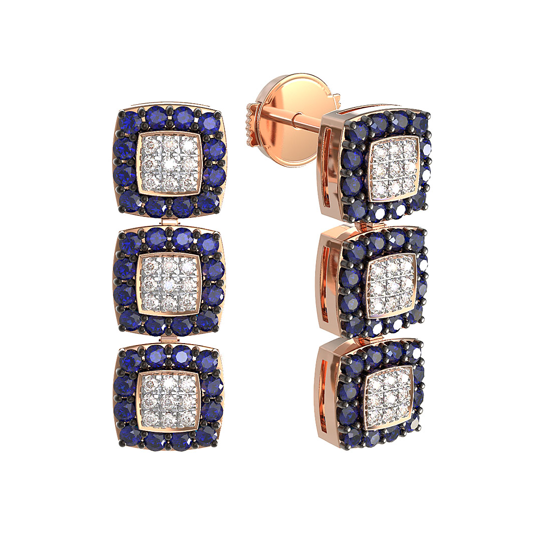 Центральным элементом композиции выступают 126 вставок круглой огранки. Глубокий синий цвет сапфиров в обрамлении ослепительно белых бриллиантов создает контрастный и выразительный акцент. Такое сочетание материалов и оттенков делает украшение универсальным дополнением как для женского, так и для мужского образа, подчеркивая безупречный вкус владельца. Эти серьги из красного золота с сапфирами и бриллиантами отлично подходят для формирования завершенного ювелирного гардероба и могут стать частью изысканного комплекта. Надежный замок-пусет обеспечивает комфортную и плотную фиксацию, позволяя носить изделие с уверенностью в каждом движении.