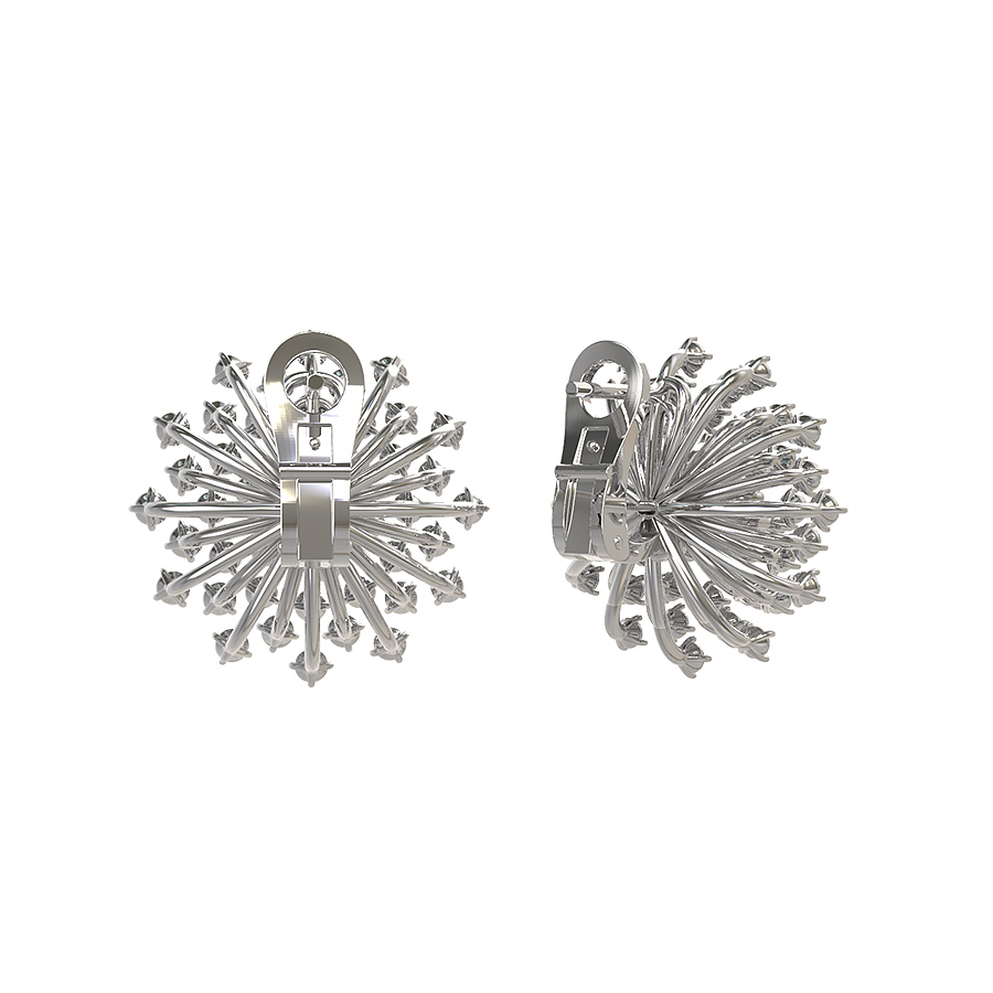 Центральным элементом композиции являются 98 драгоценных вставок — безупречных бриллиантов круглой огранки. Белые камни гармонично сочетаются с холодным оттенком металла, создавая невероятную игру света при каждом вашем движении. Ювелиры использовали классическую оправу, чтобы максимально раскрыть сияние каждого бриллианта, превращая серьги в настоящий шедевр ювелирного искусства.
