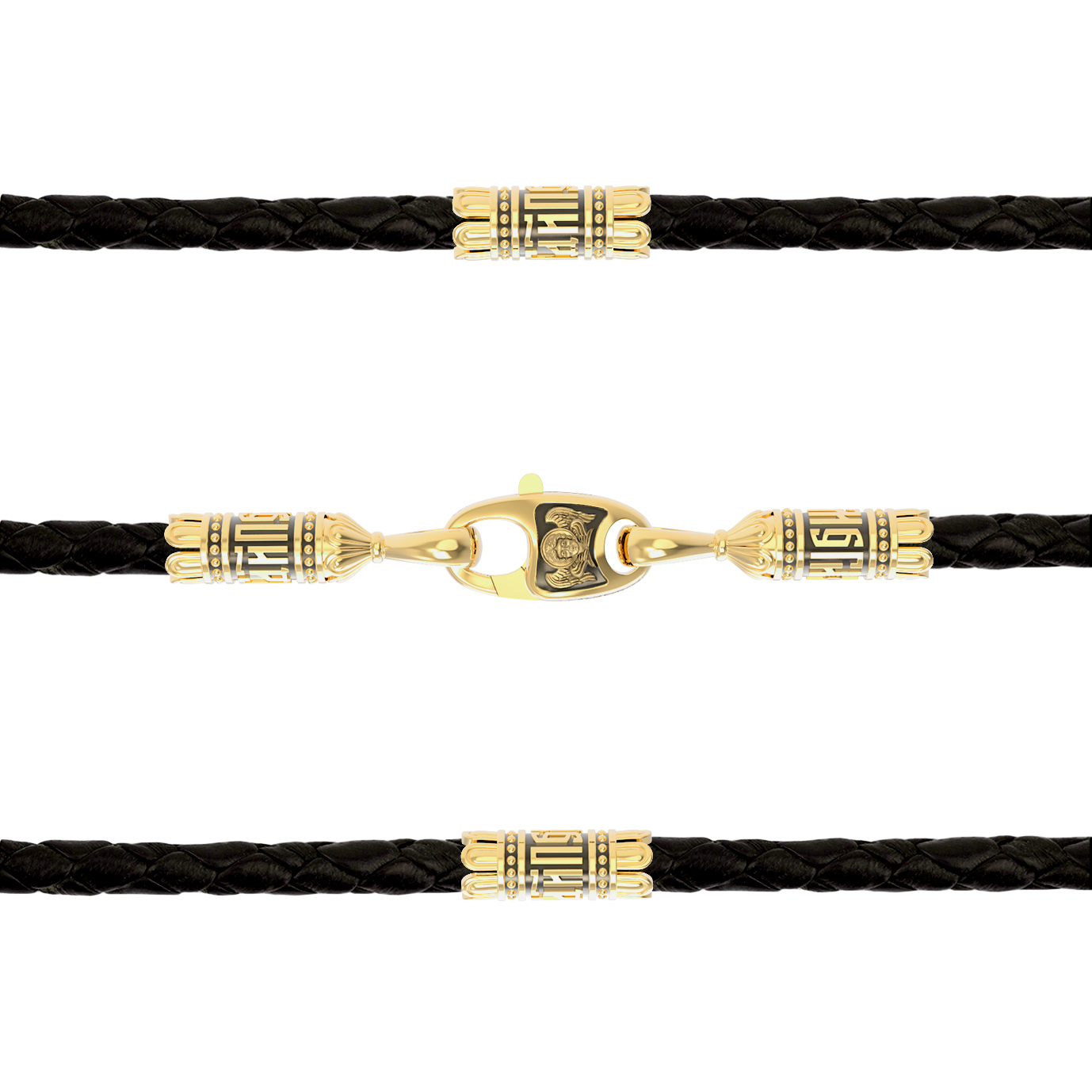 Цепь-шнурок кожа из лимонного золота 585 пробы c кожаным шнурком
