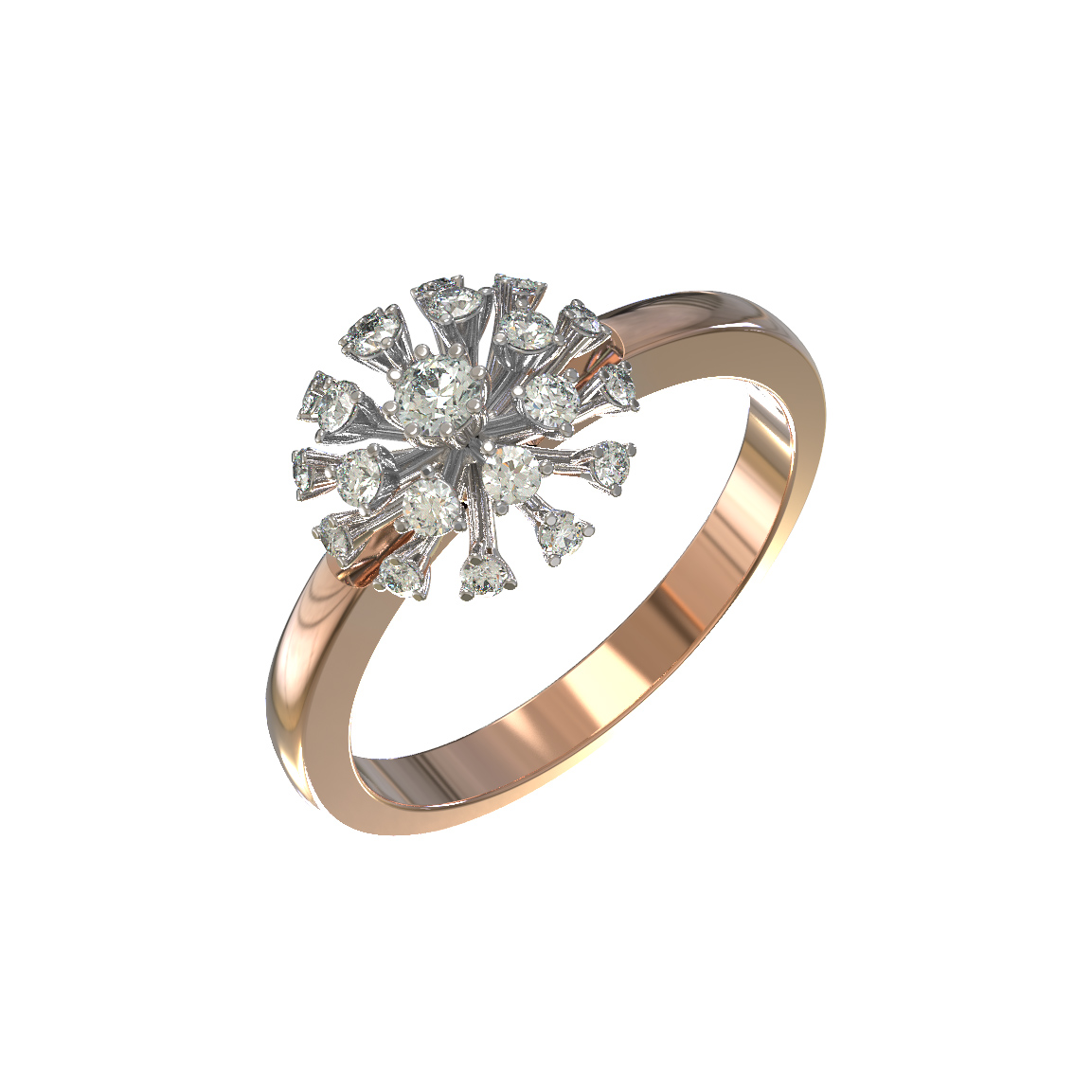 Кольцо из красного золота 585 пробы с бриллиантами представляет собой утонченное воплощение ювелирного искусства, идеально дополняющее образ уверенного в себе человека. Это изделие, вошедшее в коллекцию De Luxe Бриллианты — Ease, привлекает внимание своей необычной формой, напоминающей сияющий цветок или вспышку света. В центре композиции расположены 21 бриллиант круглой формы с классическим белым цветом, которые закреплены так, чтобы максимально раскрыть игру света при каждом движении руки.