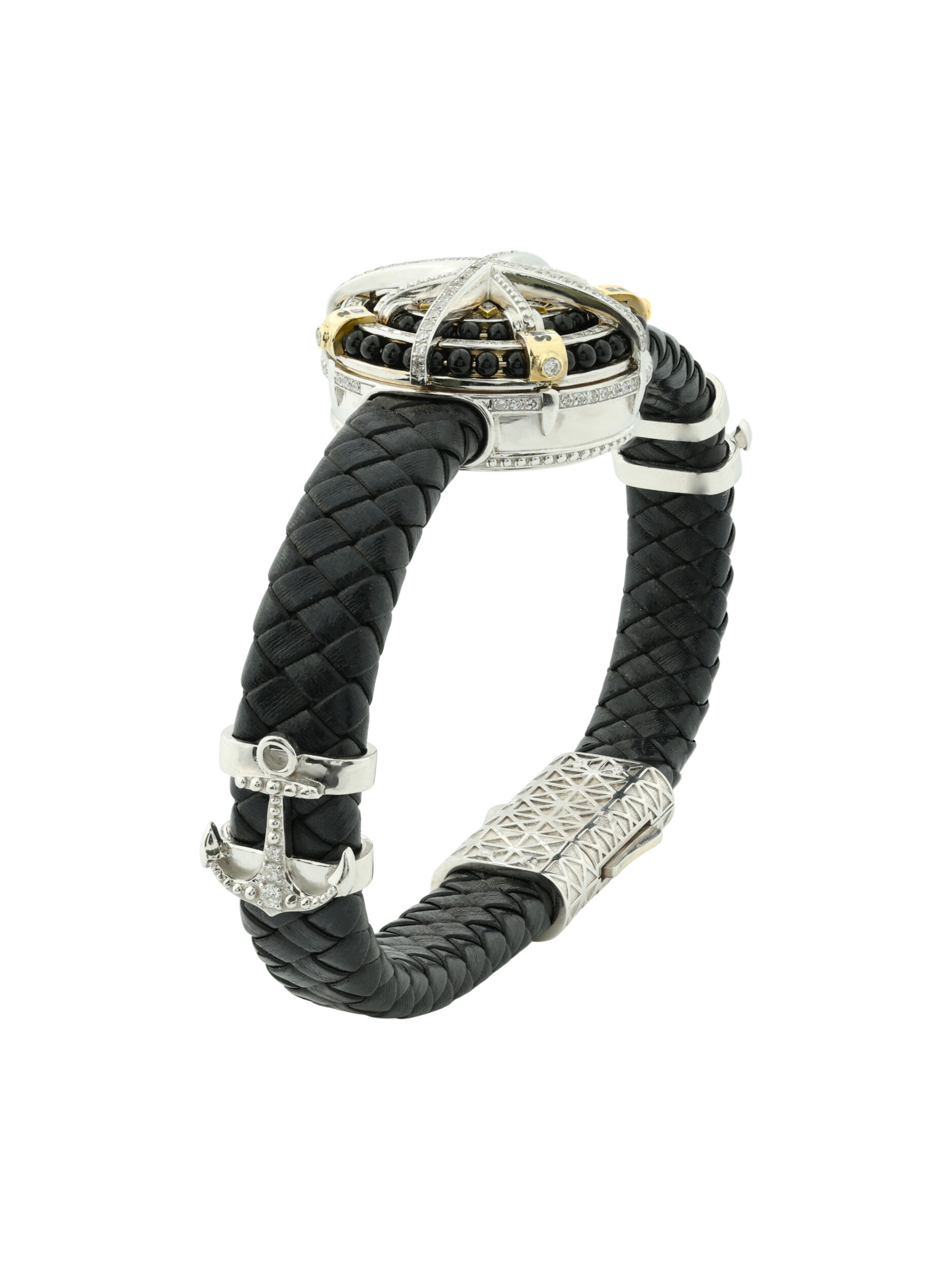 | Вставка: | Бриллиант, Оникс, Шнурок кожа, Эмаль |