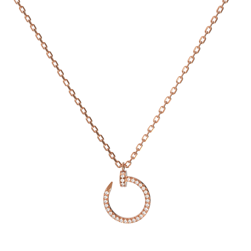 Колье из красного золота 585 пробы из коллекции De Luxe — Гвоздь — это воплощение современного стиля и утонченного дизайна. Украшение выполнено в оригинальной форме гвоздя, что придает изделию динамичный и дерзкий характер. Благородный оттенок красного золота гармонично сочетается с ослепительным блеском вставок, создавая яркий визуальный акцент, который подчеркнет безупречный вкус владельца.