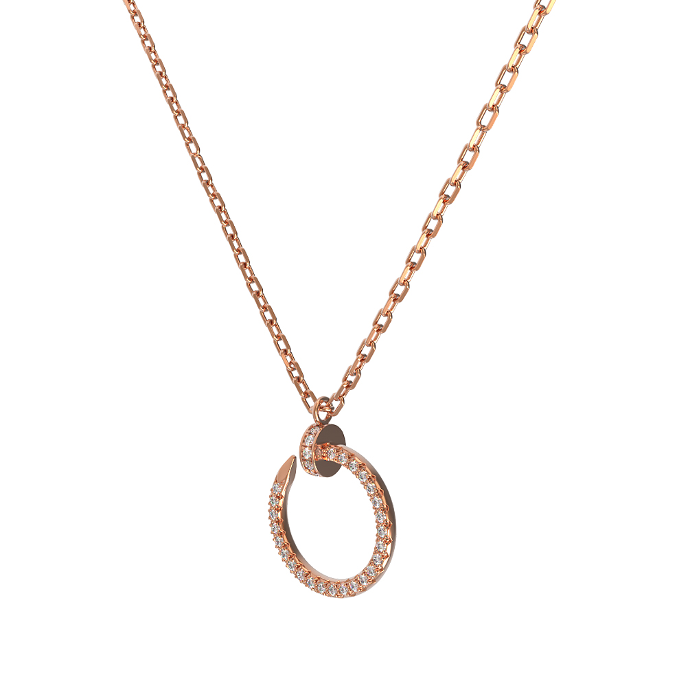 Декоративный элемент колье инкрустирован 36 бриллиантами круглой огранки с белым цветом вставок. Камни расположены по всей окружности гвоздя, создавая игру света при каждом движении. Лаконичное исполнение позволяет носить это украшение как самостоятельный аксессуар, так и в составе стильных комплектов с другими ювелирными изделиями.