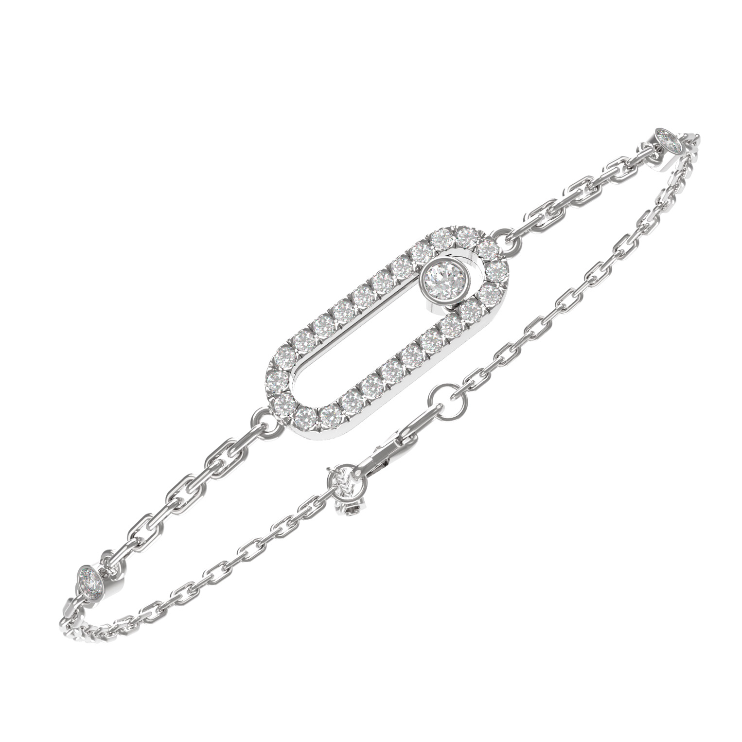 Это изделие легко комбинируется с другими украшениями, позволяя создавать стильные комплекты для торжественных выходов или повседневных деловых встреч. Благодаря своему минималистичному и вместе с тем роскошному виду, данный аксессуар станет прекрасным подарком для ценителей ювелирного мастерства. Добавьте ноту изысканности в свой гардероб с помощью браслета, где безупречное качество белого золота соединяется с магией сверкающих бриллиантов.