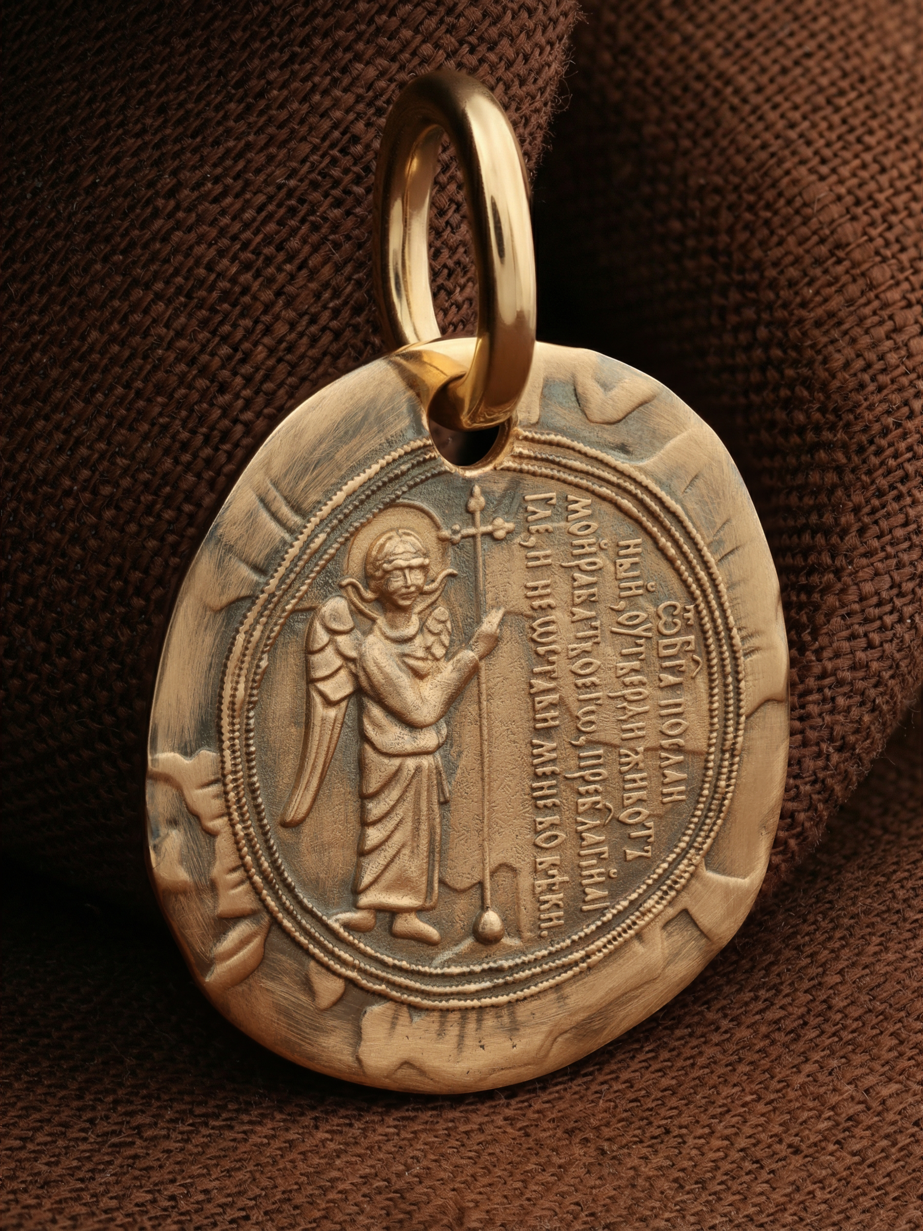 На оборотной стороне образка изображен Святой Ангел-Хранитель. В правой руке он держит крест. Ангел-Хранитель — это Ангел приставляемый Богом к человеку при крещении для охраны и помощи в добрых делах. Он невидимо находится при человеке на протяжении всей его жизни, если человек сохраняет в себе любовь к Богу и истинную веру перед Ним. Ангел-Xранитель делают для нас все, что служит к истинному нашему благу и спасению. Рядом с образом размещена молитва: «От Бога посланный, утверди живот мой, раба твоего, преблагий Aнгеле, и не остави мене во веки.»