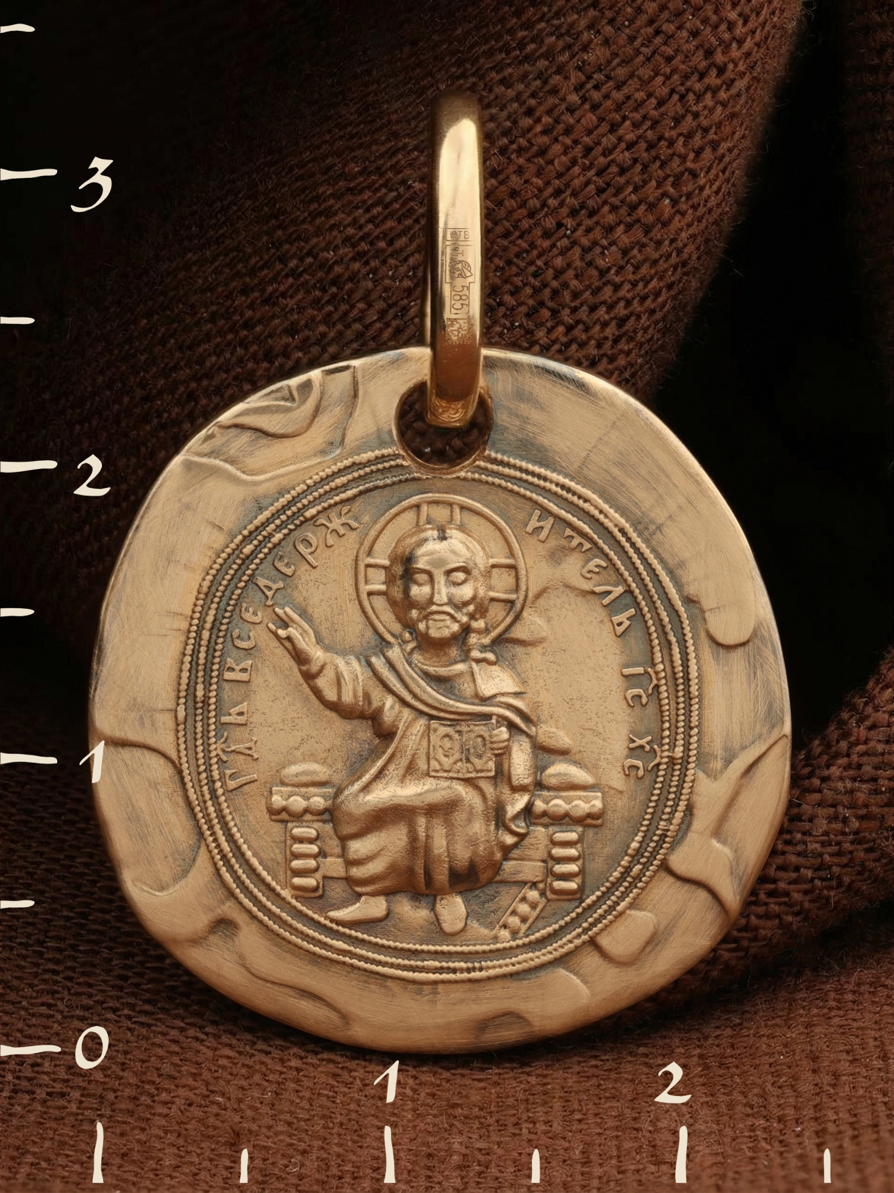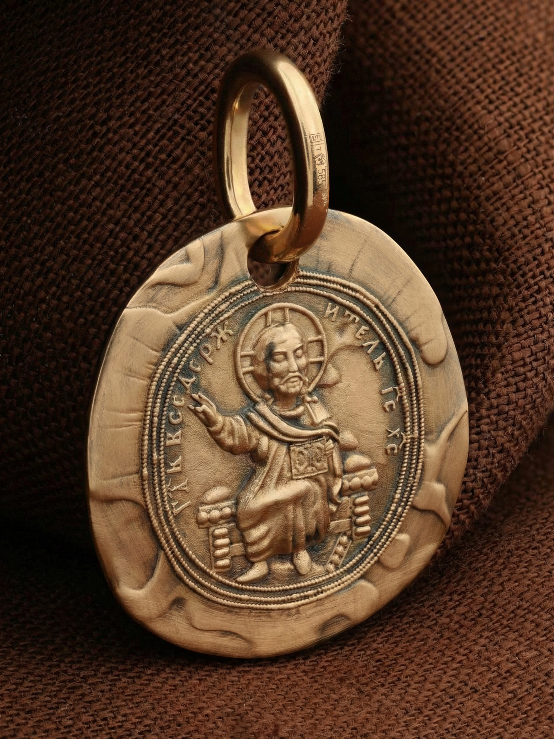 На лицевой стороне образка размещен образ Господа и Спасителя нашего Иисуса Христа — Господь Вседержитель или Пантократор (от греч. всевластный, всесильный). Он представлен как Царь Небесный и будущий Судия мира. Именование Иисуса «Вседержителем» указывает, с одной стороны, на Его Божественную природу: «Аз есмь Альфа и Омега, начало и конец, говорит Господь, Который есть и был и грядет, Вседержитель» (Откр. 1: 8). С другой стороны, такое именование связано и с человеческой природой Христа, искупившего крестной жертвой людские грехи и обновившего тем самым человеческую природу. Правой рукой Он благословляет, а левой держит Книгу. Она символизирует Евангелие — благую весть, принесенную Христом всему миру, а также и Книгу Жизни, где записаны имена всех, возлюбивших Бога. Указывая на раскрытое Евангелие и одновременно благословляя, Иисус недвусмысленно указывает нам путь к спасению души