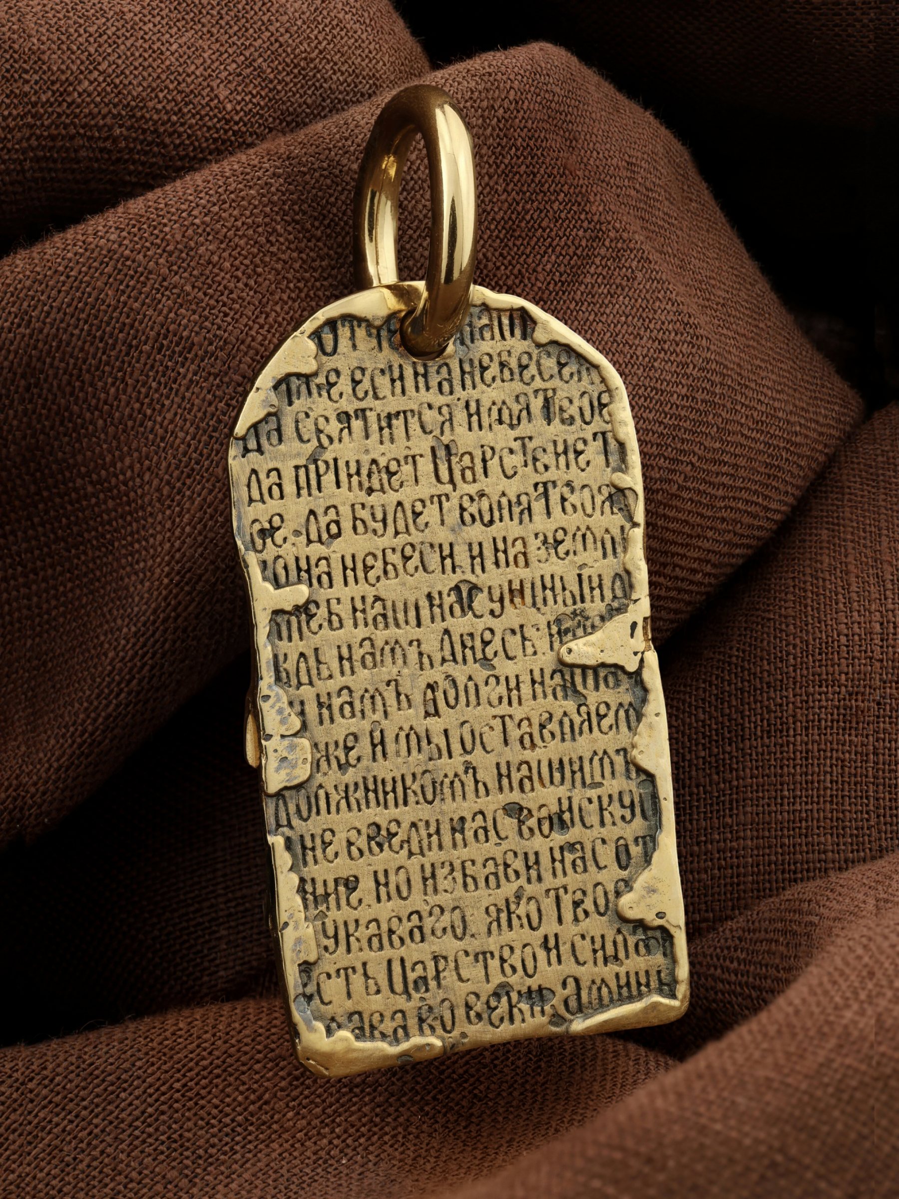 «Отче наш, Иже еси на небесех! Да святится имя Твое, да приидет Царствие Твое, да будет воля Твоя, яко на небеси и на земли. Хлеб наш насущный даждь нам днесь; и остави нам долги наша, якоже и мы оставляем должником нашим; и не введи нас во искушение, но избави нас от лукаваго. Яко Твое есть Царство и сила, и слава во веки. Аминь.»