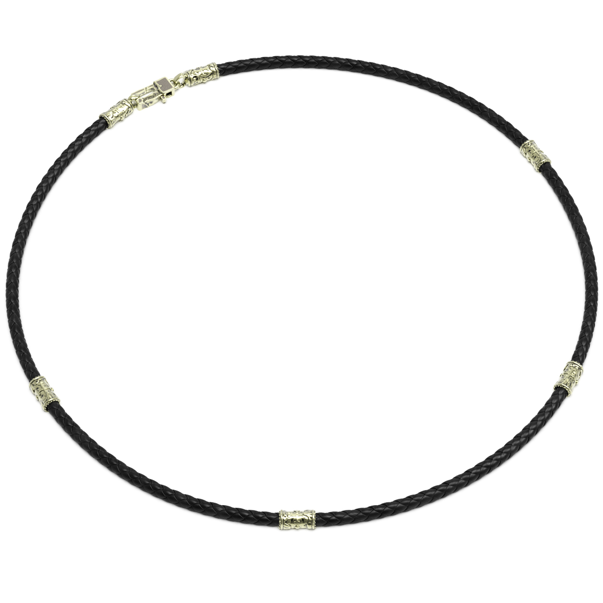 Цепь-шнурок кожа из зелёного золота 585 пробы c кожаным шнурком