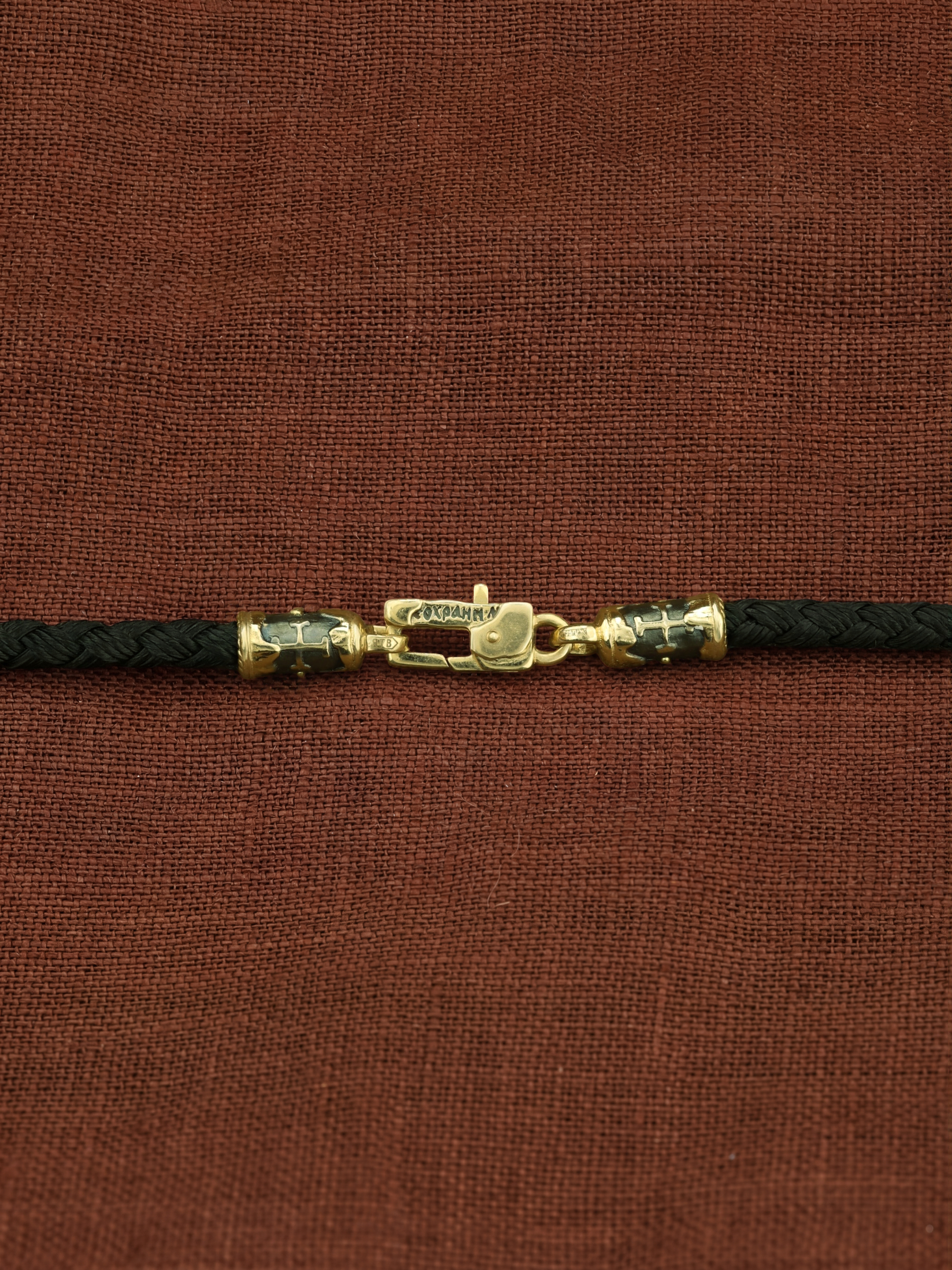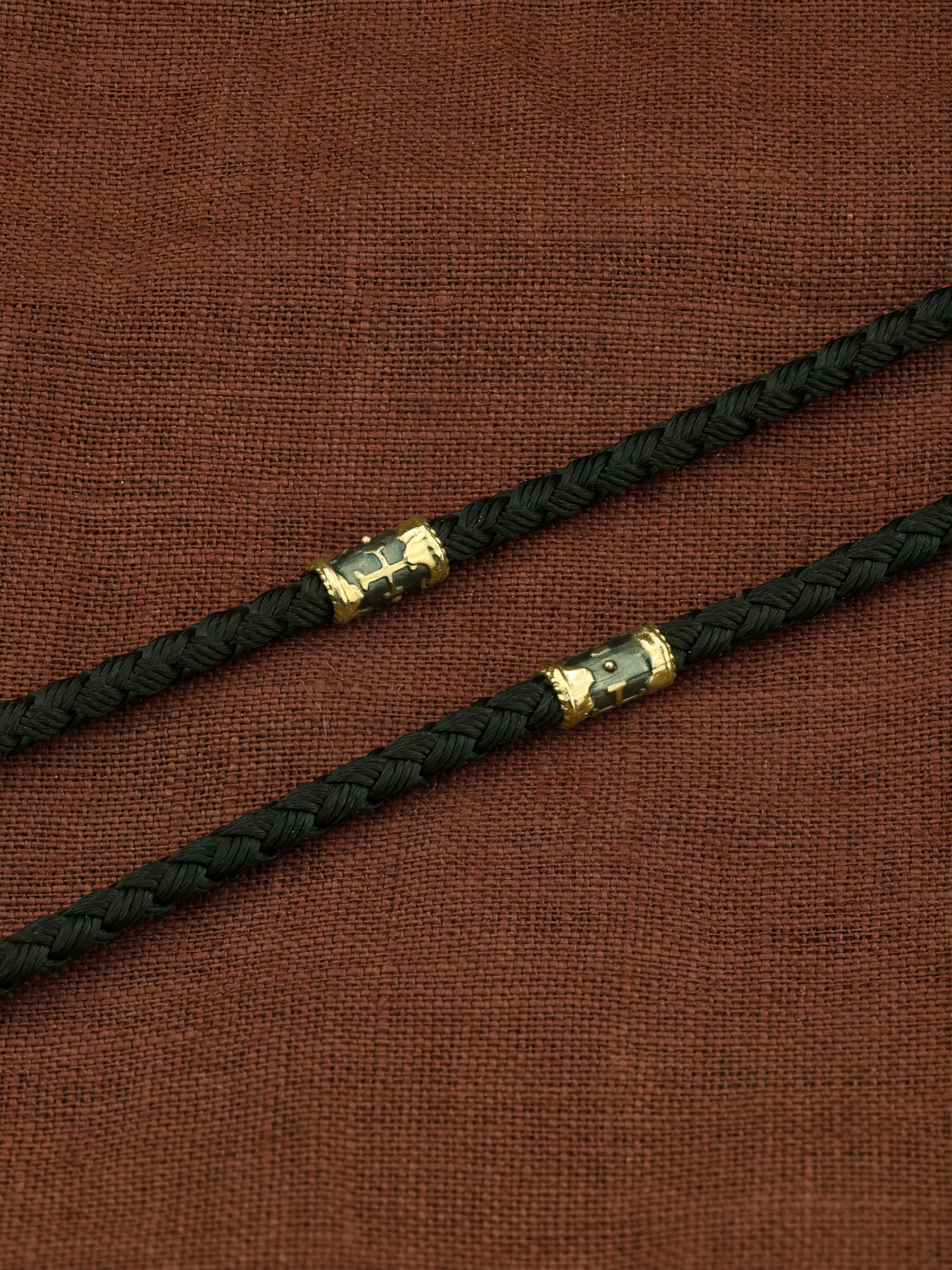 Шнурок шёлковый из зелёного золота c шёлковым шнурком