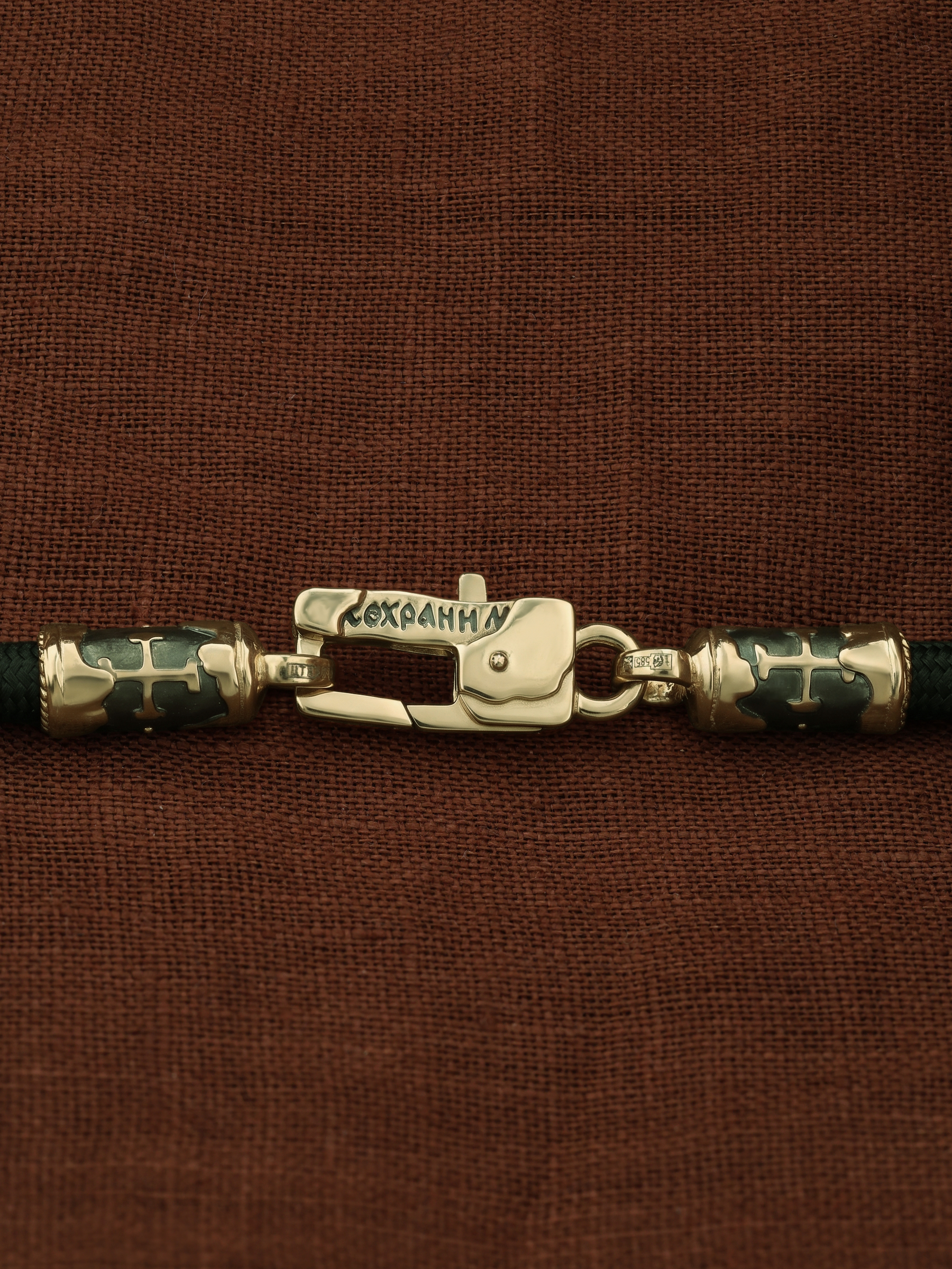 Шнурок шёлковый из зелёного золота c шёлковым шнурком