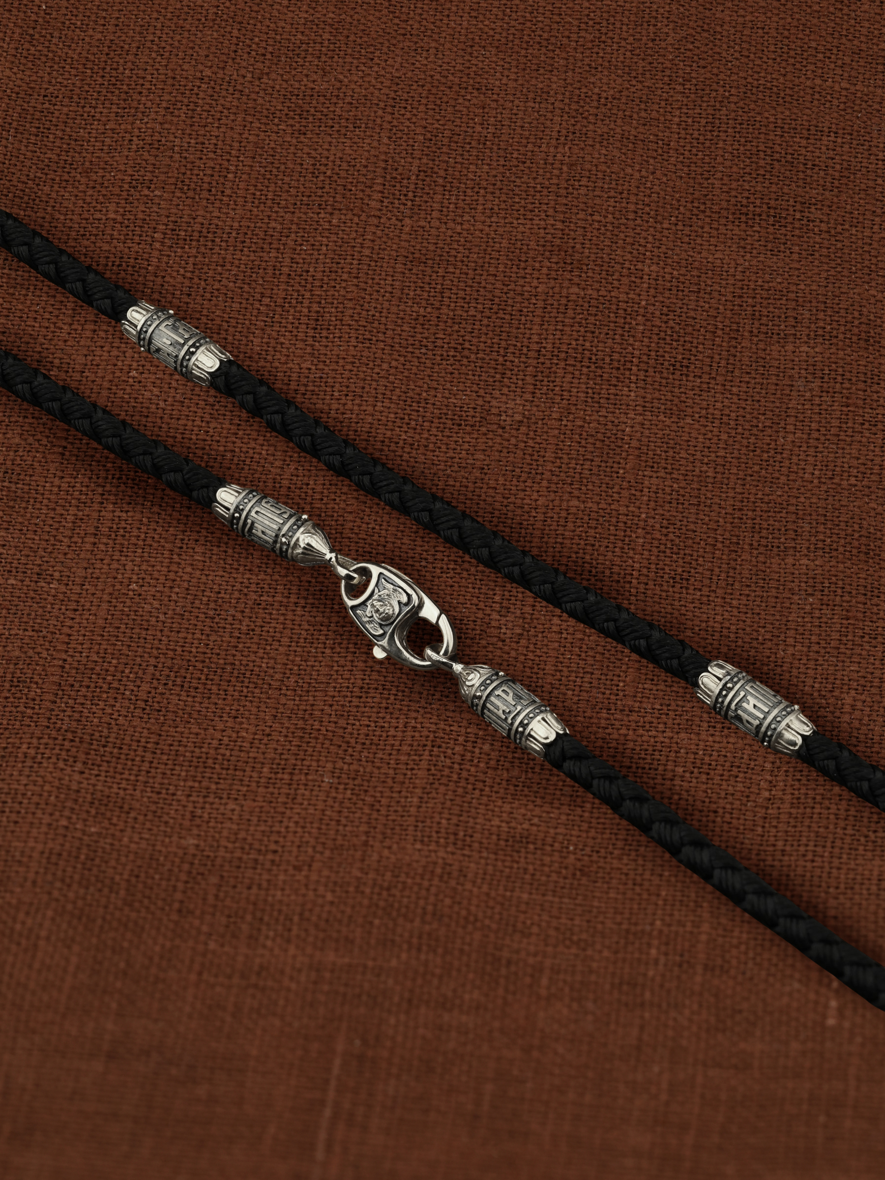 Шнурок шёлковый из белого золота c шёлковым шнурком