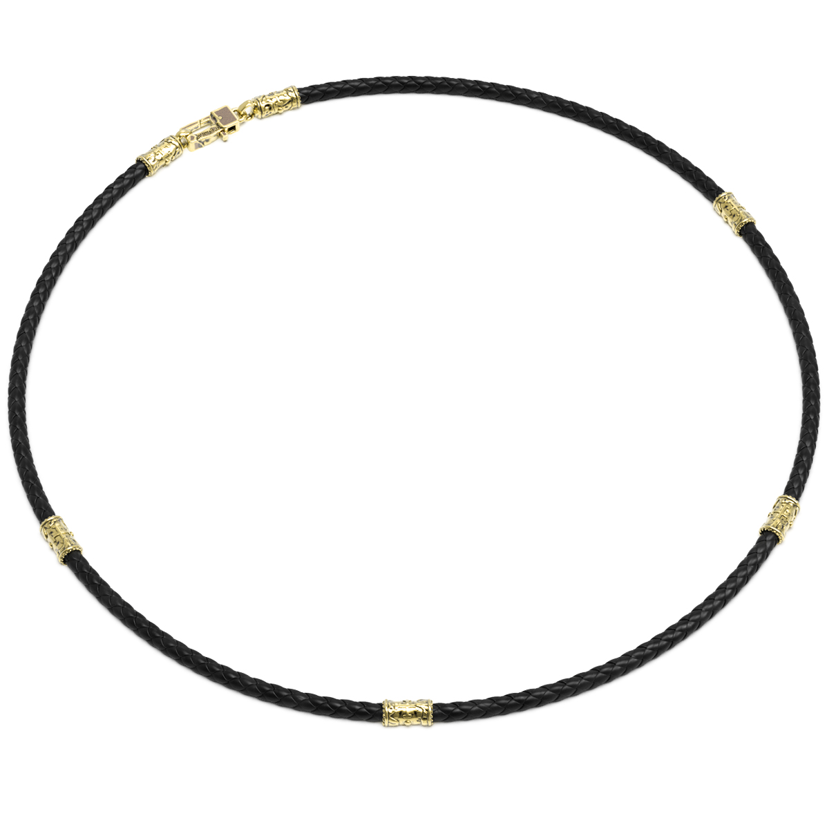 Цепь-шнурок кожа из лимонного золота 585 пробы c кожаным шнурком
