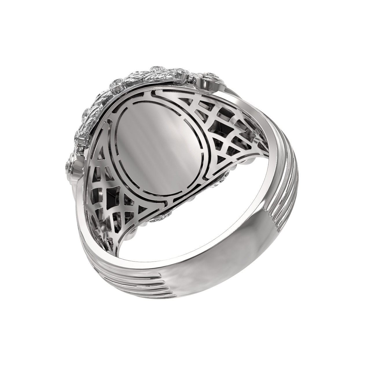 Кольцо из белого золота 585 пробы c бриллиантами и ониксом