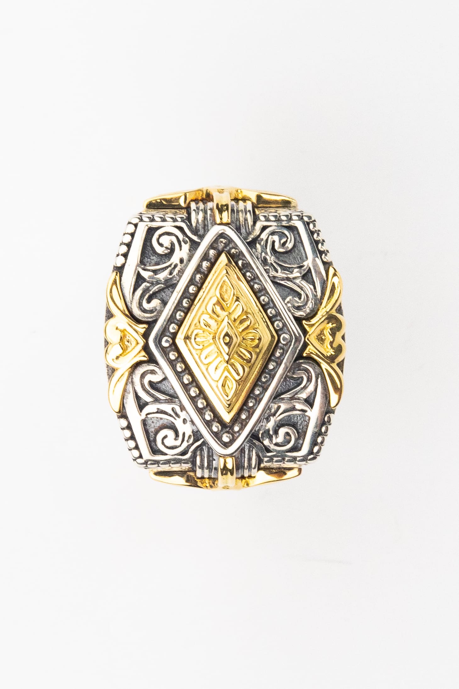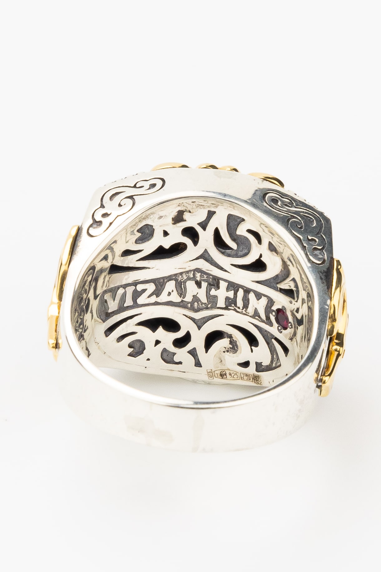 Кольцо из серебра 925 пробы и золота 750 пробы c рубином