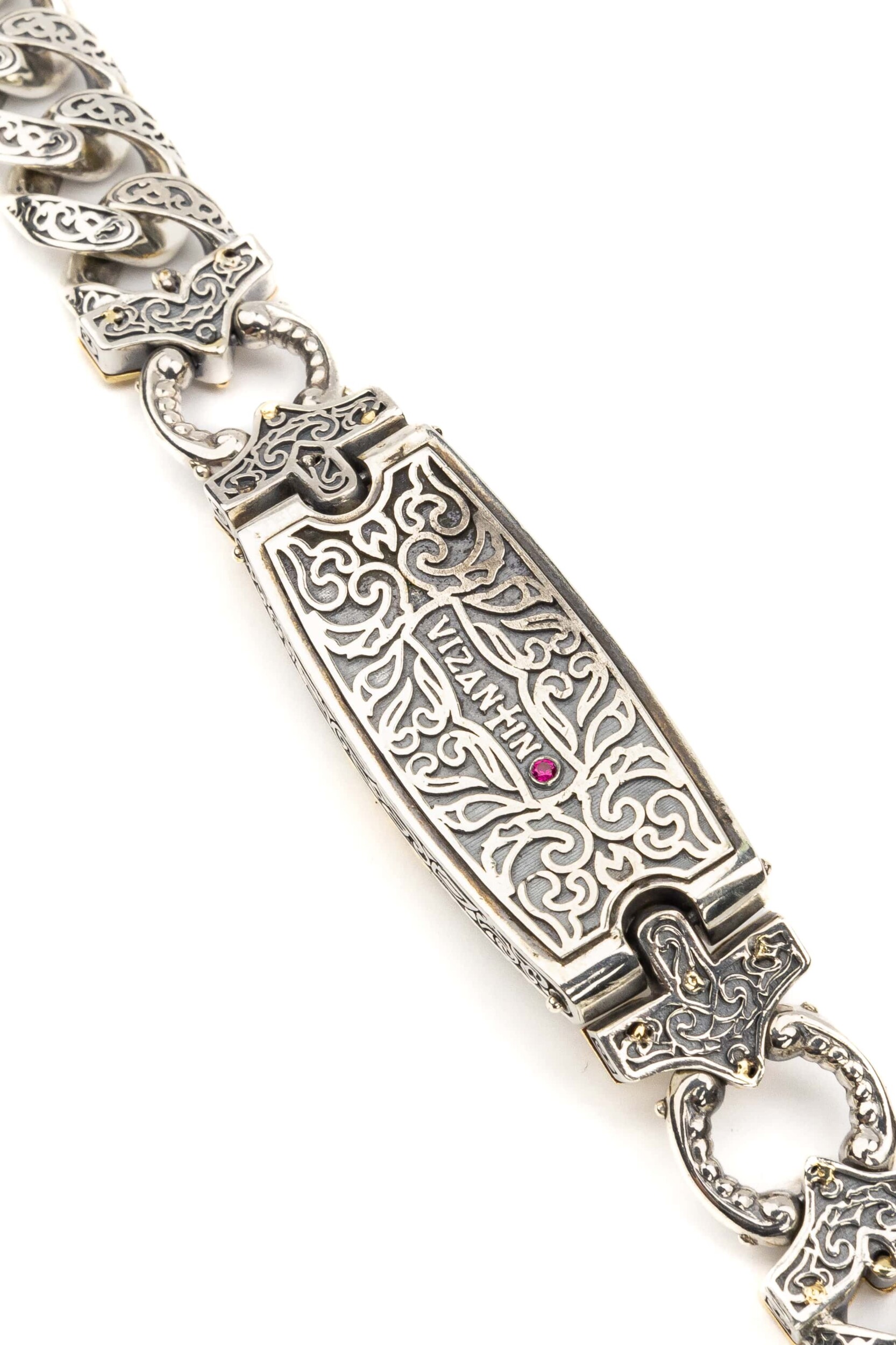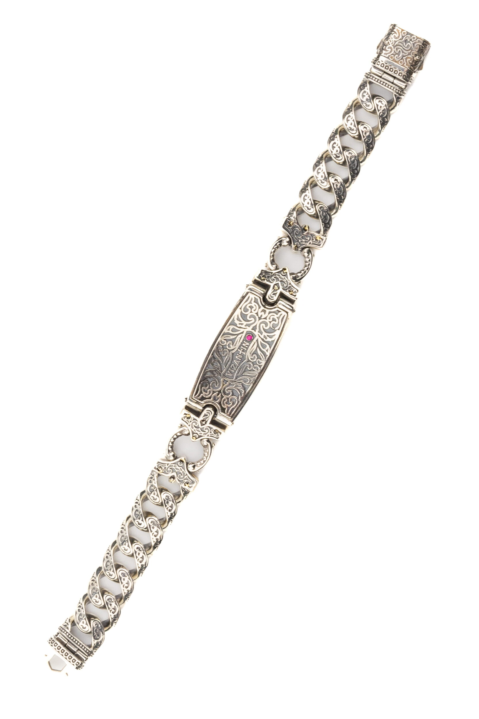 Браслет из серебра 925 пробы и золота 750 пробы c рубином