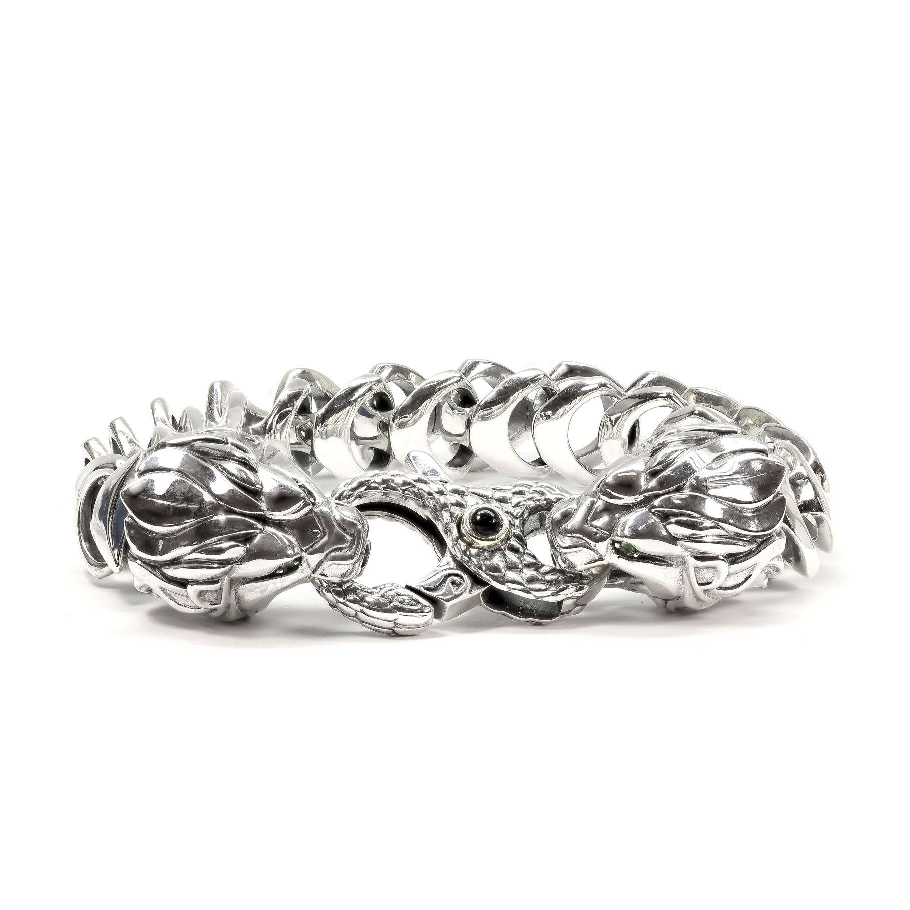 Браслет из серебра 925 пробы и золота 750 пробы c ониксом, изумрудом и рубином