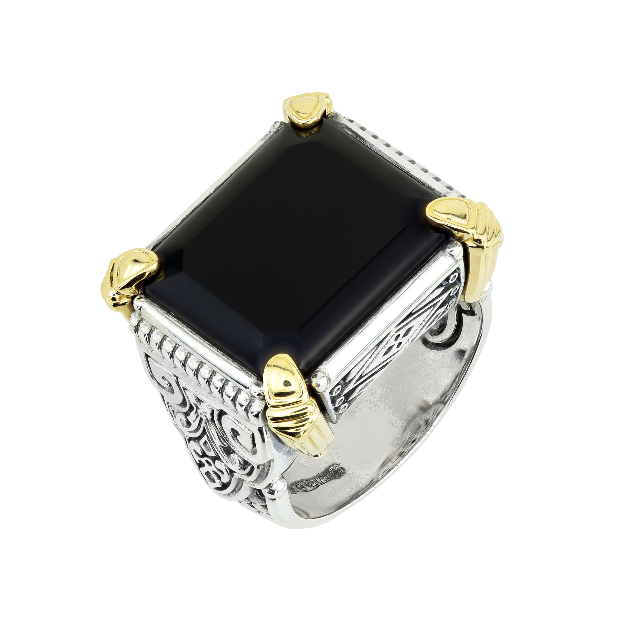 Кольцо из серебра 925 пробы и золота 750 пробы c ониксом и рубином