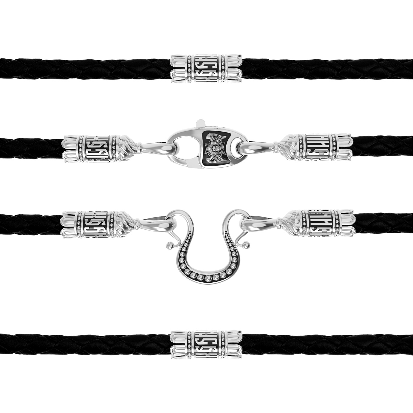 Цепь-шнурок кожа из белого золота 585 пробы c кожаным шнурком
