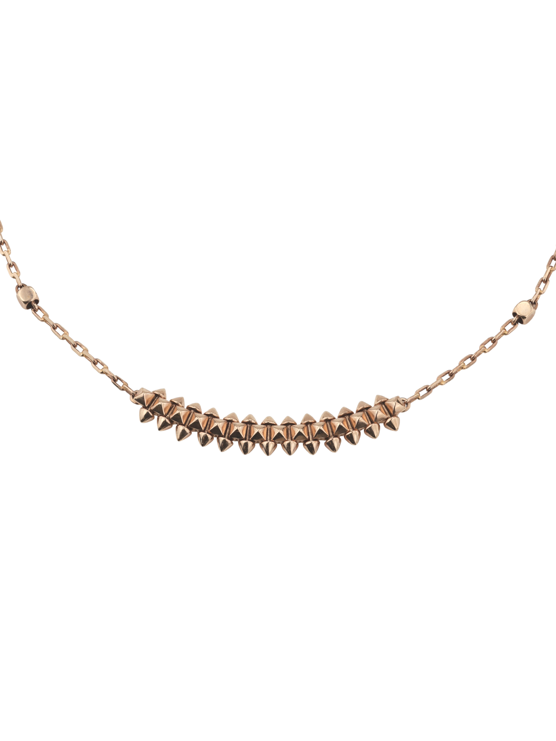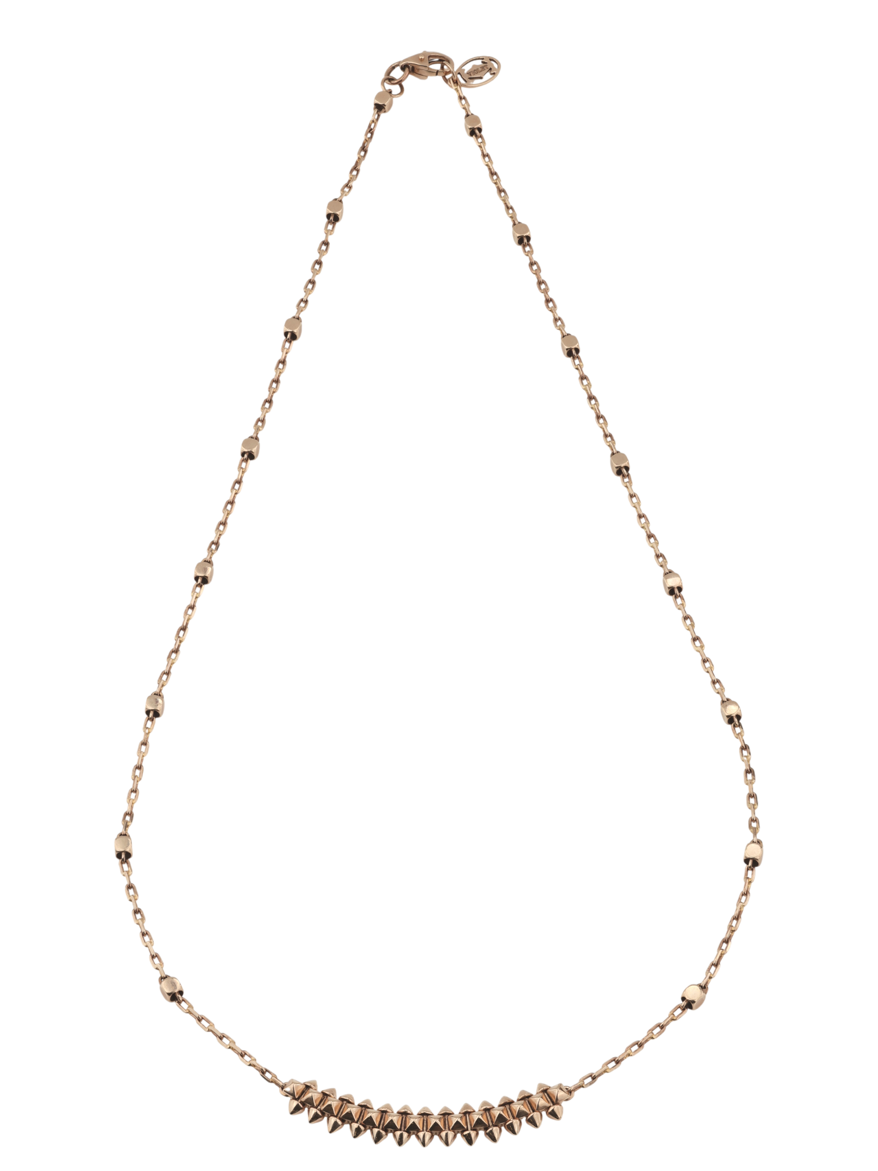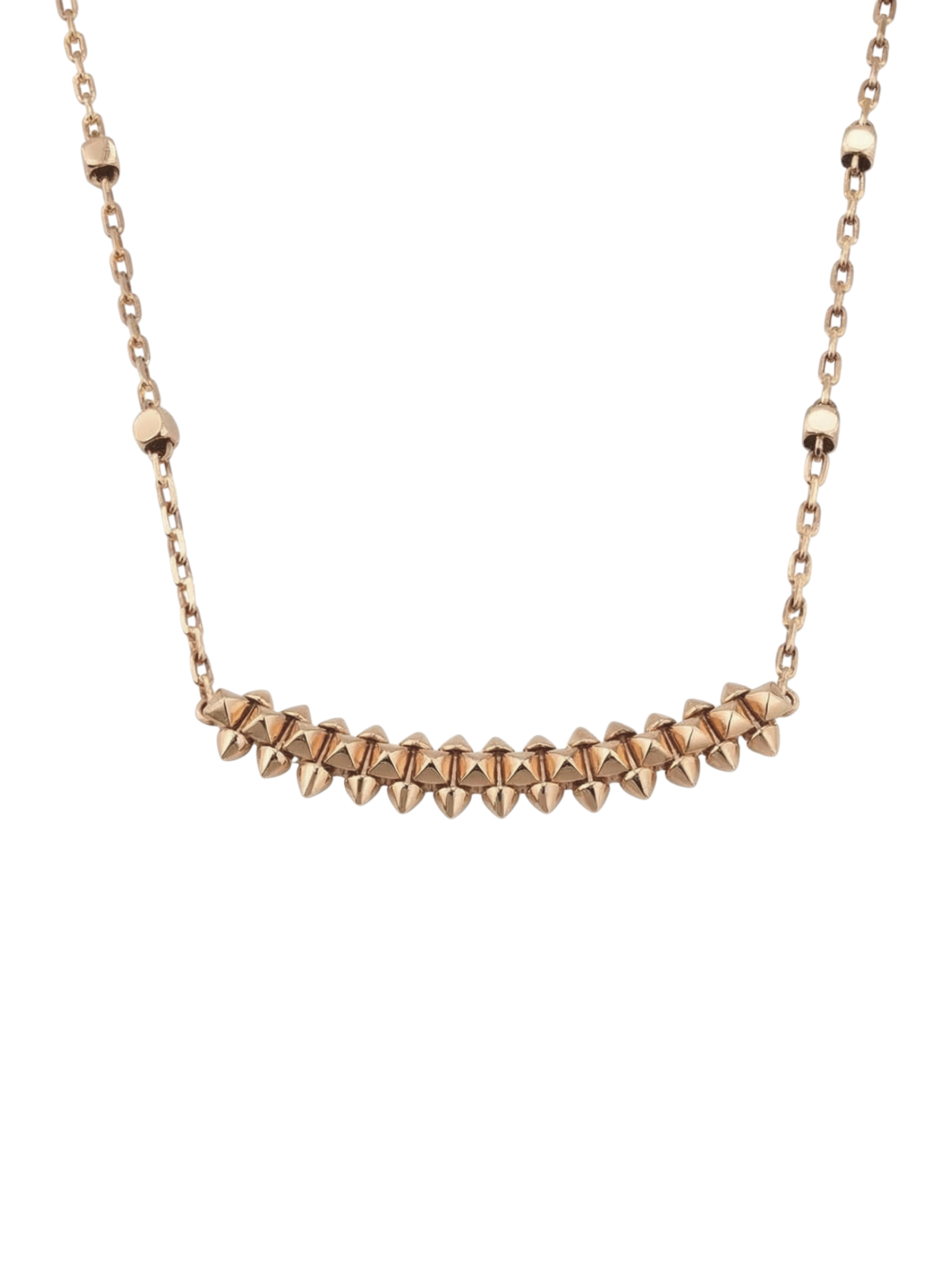 Колье из розового золота 585 пробы — яркий представитель коллекции De Luxe — Дерзость, созданный для тех, кто предпочитает смелые и выразительные украшения. Это ювелирное изделие воплощает в себе эстетику дерзости и современной роскоши, акцентируя внимание на безупречном качестве исполнения. Центральным элементом дизайна стали эффектные шипы, которые добавляют украшению характера и позволяют выделиться в любом образе.