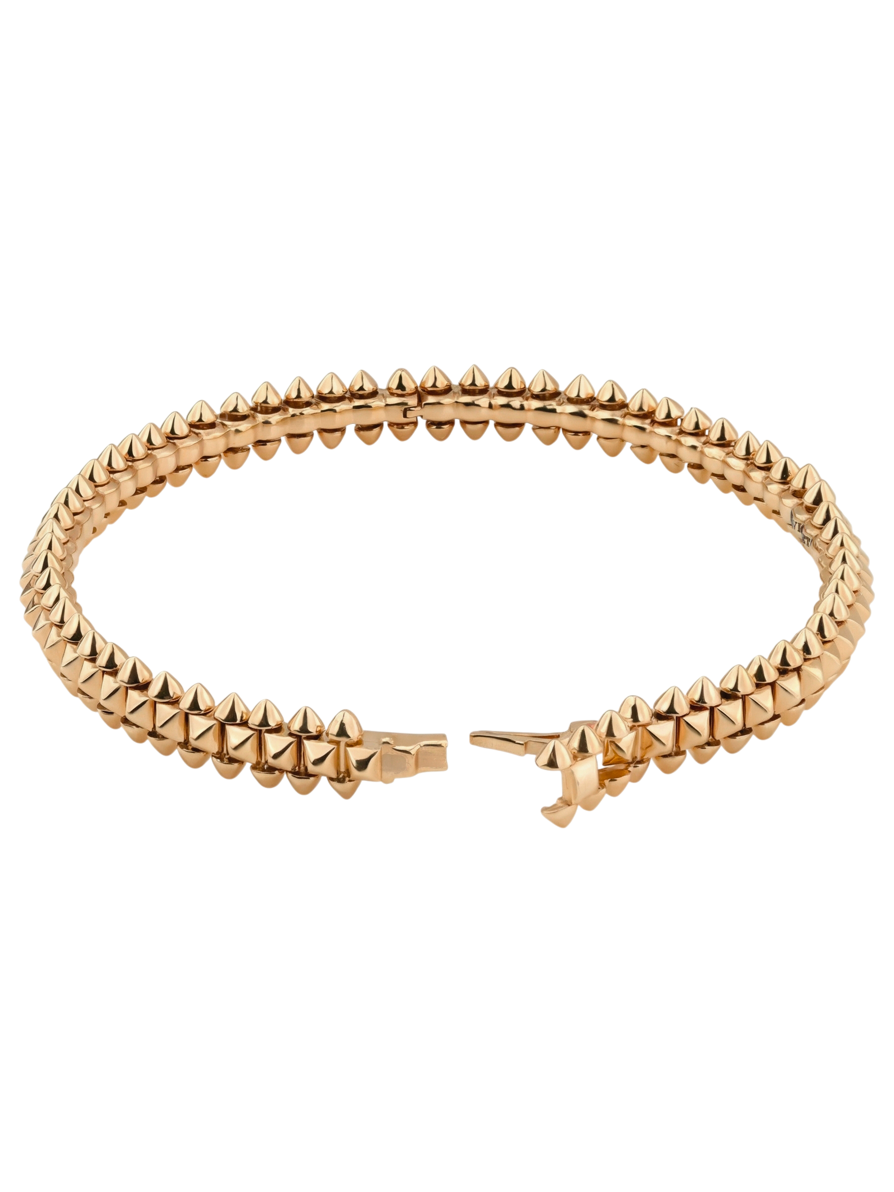 Эффектный золотой браслет — это воплощение смелости и яркого стиля. Украшение выполнено из красного золота 585 пробы, которое придает изделию благородный и теплый оттенок. Дизайнерская концепция построена на выразительных элементах: поверхность браслета декорирована острыми шипами, создающими дерзкий и узнаваемый облик. Этот аксессуар станет центральным акцентом вашего образа, подчеркивая уверенность в себе и безупречный вкус.