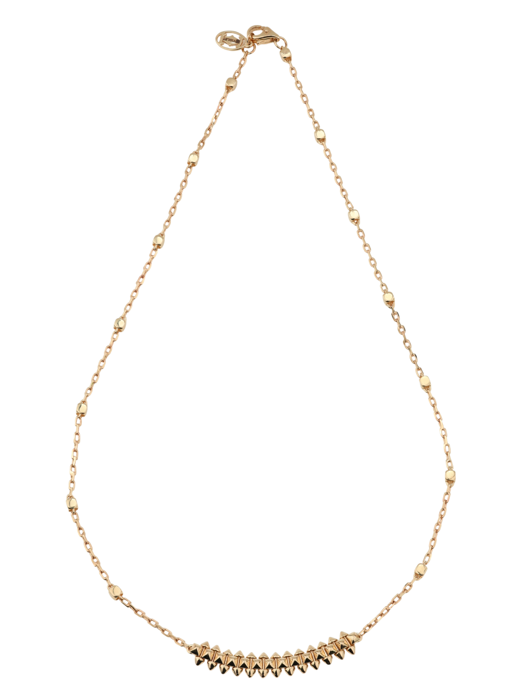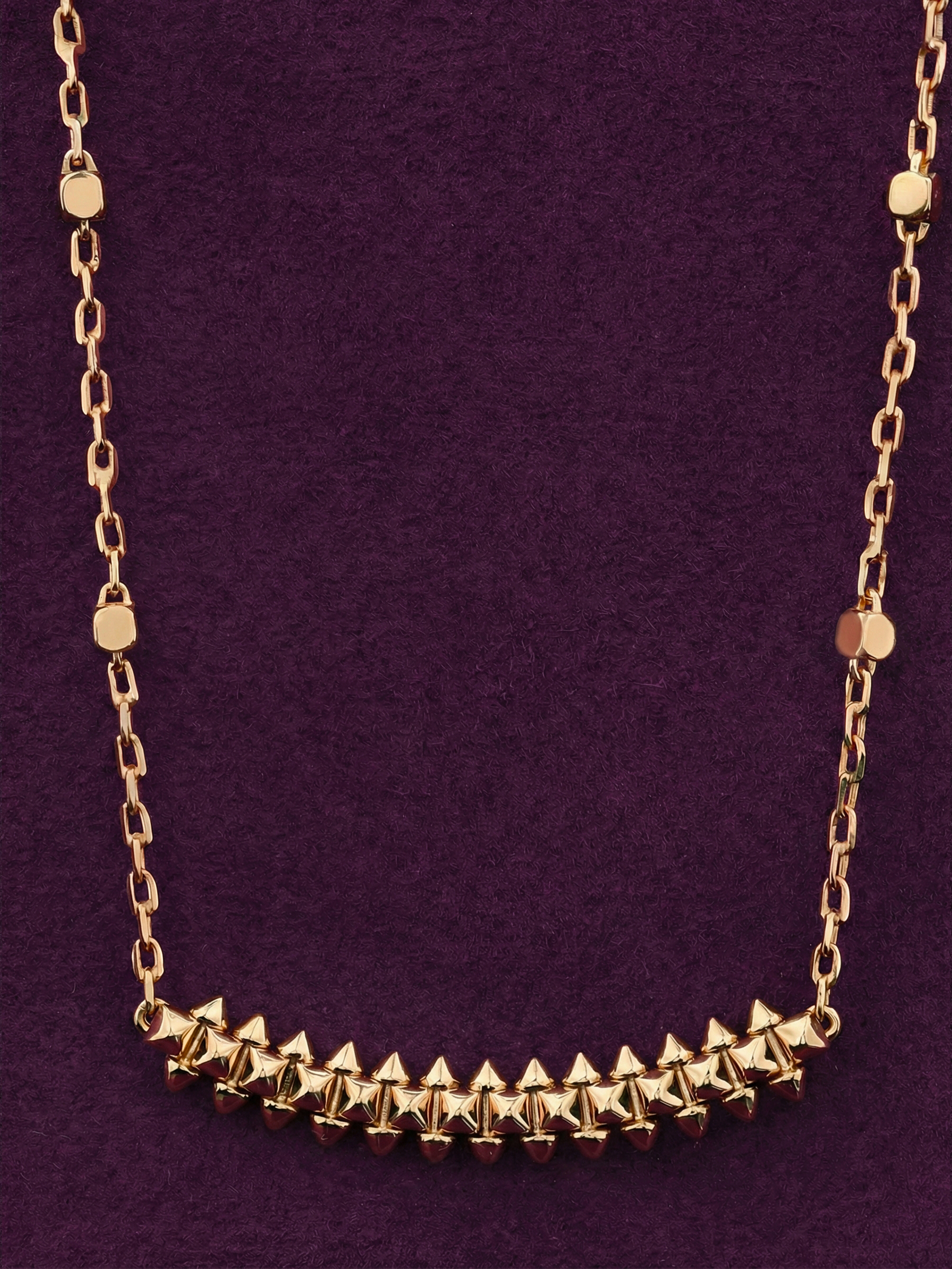 Колье из красного золота 585 пробы — это воплощение смелого стиля и современной эстетики. Яркое украшение из коллекции De Luxe — Дерзость создано для тех, кто не боится подчеркнуть свою индивидуальность и добавить дерзкий акцент в повседневный или вечерний образ. Дизайн колье вдохновлен актуальными трендами: центральная часть изделия выполнена в форме выразительных шипов, которые притягивают взгляд своим блеском и четкими гранями.