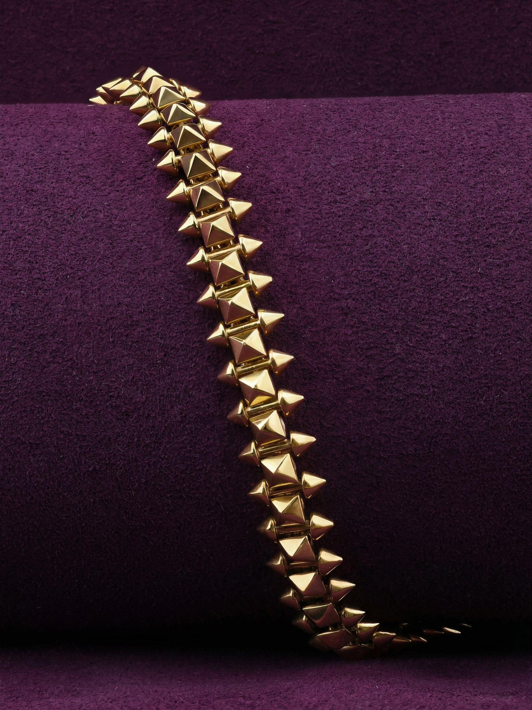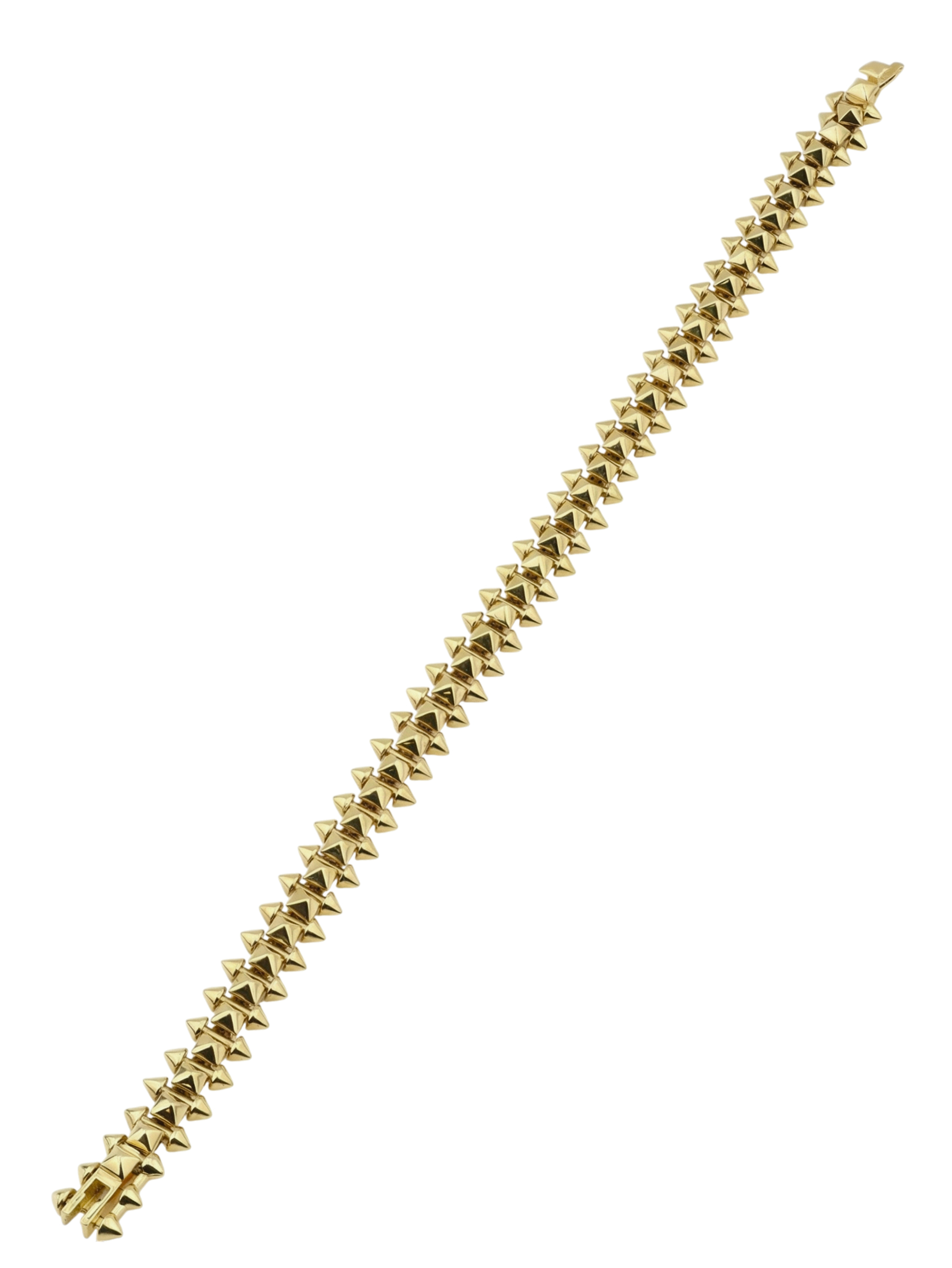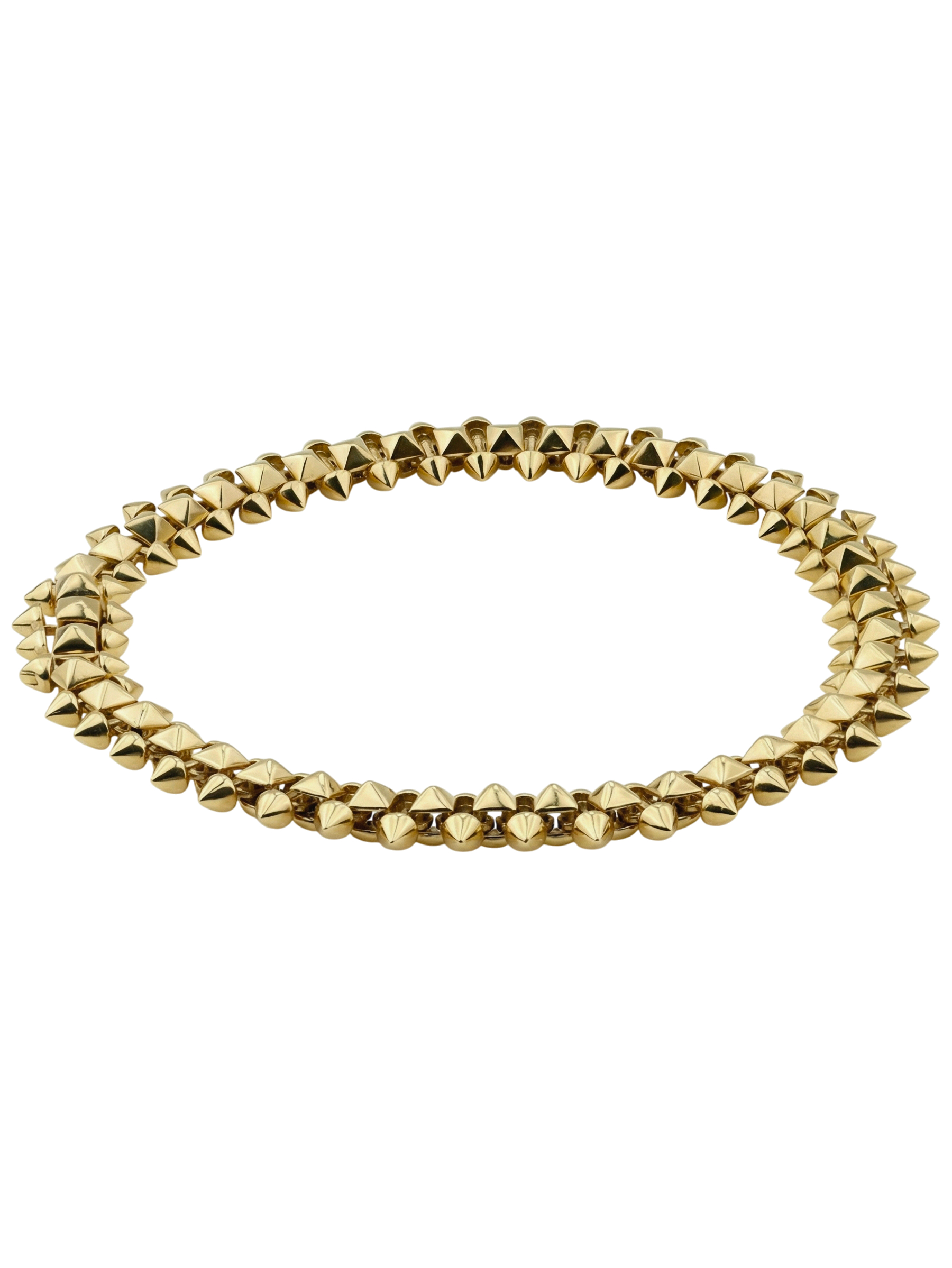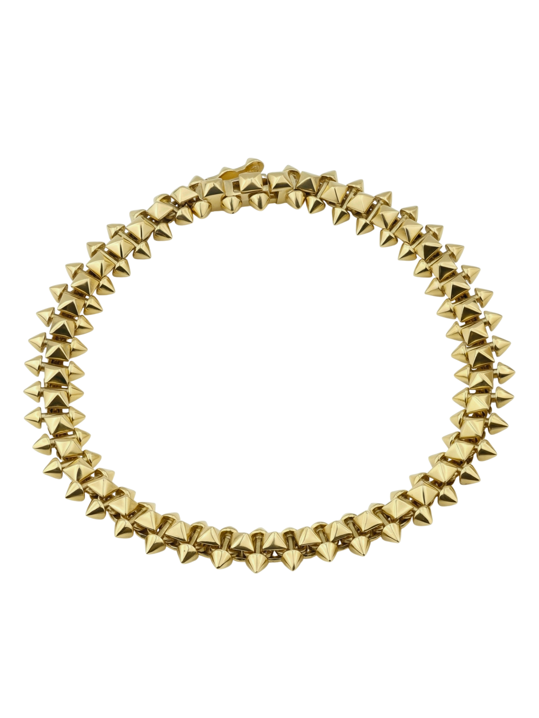 Этот роскошный браслет из лимонного золота 585 пробы станет центральным акцентом вашего образа. Дизайн изделия, вдохновленный эстетикой коллекции De Luxe — Дерзость, отличается смелым и выразительным исполнением. Каждое звено украшения выполнено в виде объемных шипов, которые создают неповторимую игру света на благородном металле. Лимонный оттенок золота придает аксессуару особую элегантность и современный вид, выделяя его среди классических моделей.