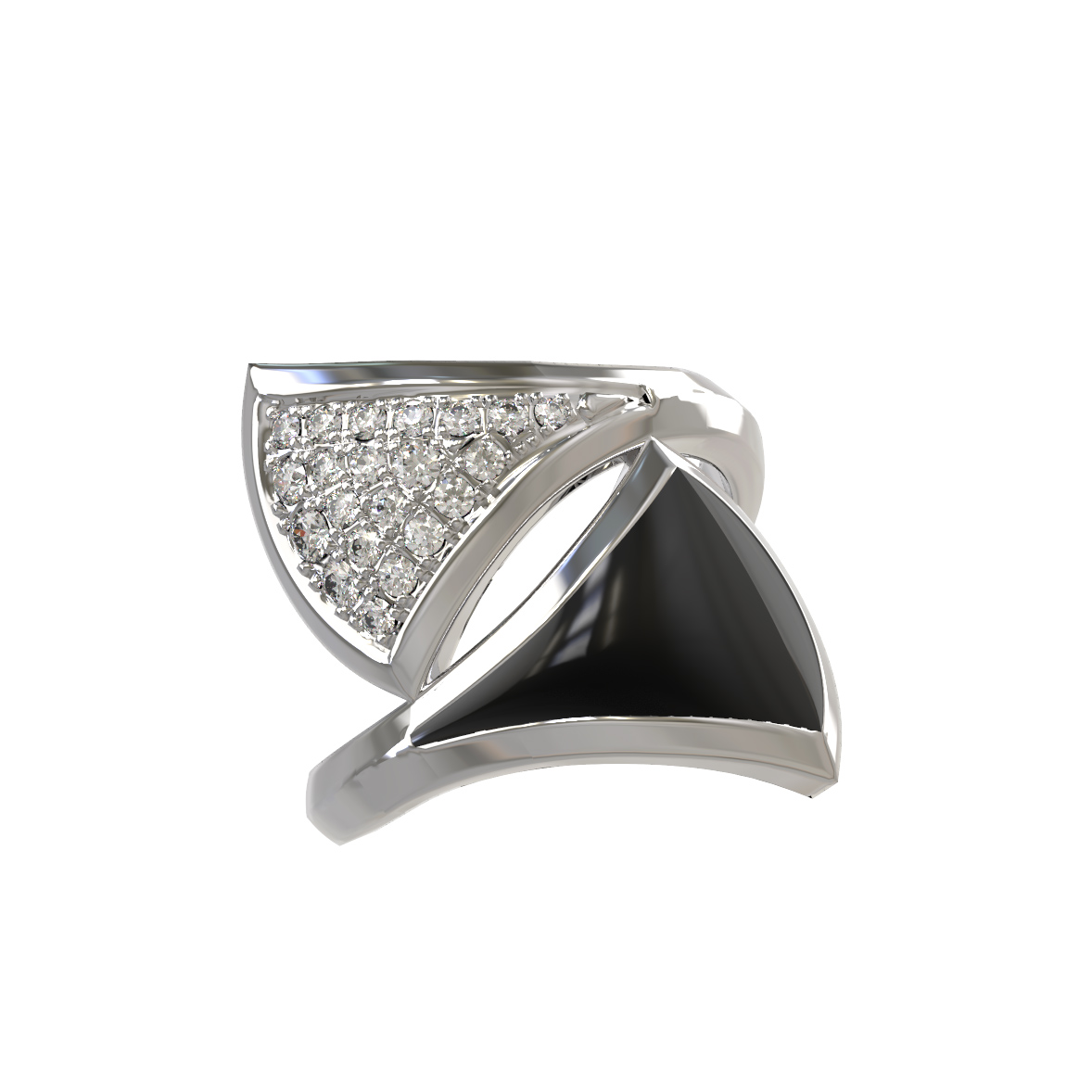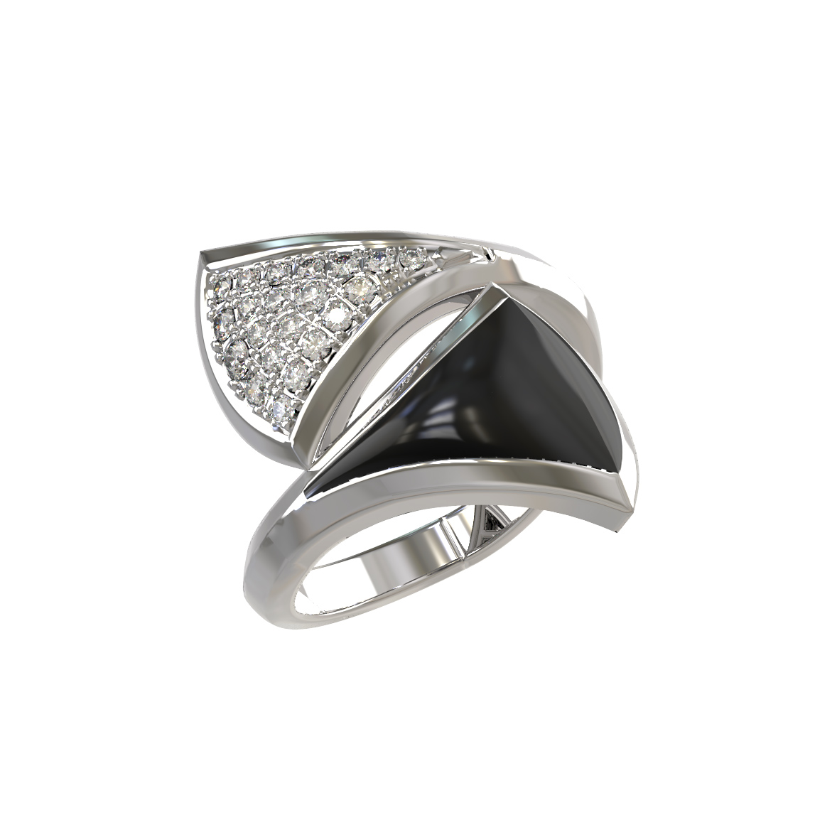 Кольцо из белого золота c бриллиантами и ониксом