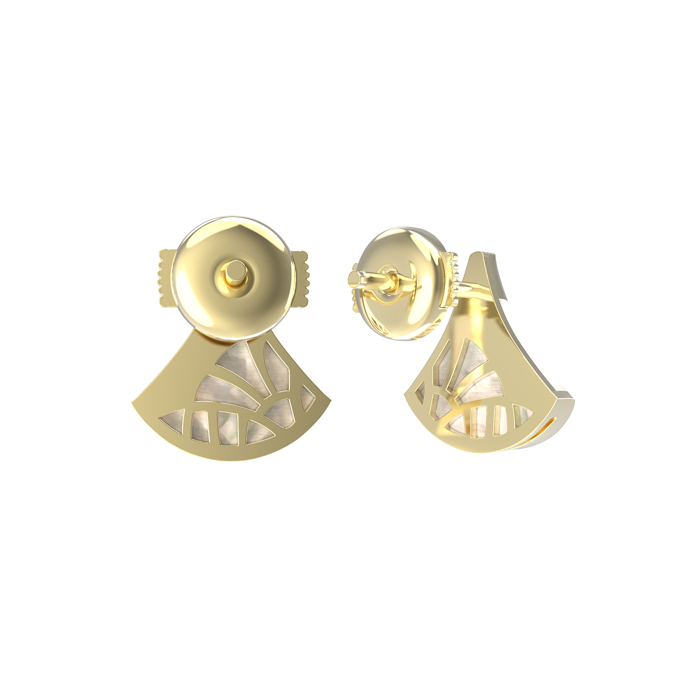 Центральным элементом композиции является нежный перламутр, мягко переливающийся под лучами света, создавая эффект внутреннего сияния. Вставки перламутра дополнены яркими бриллиантами круглой формы, которые добавляют ювелирному изделию роскошный блеск и глубину. В общей сложности модель украшают 4 вставки: перламутр и сверкающие белые бриллианты, акцентирующие внимание на безупречном исполнении каждой детали.