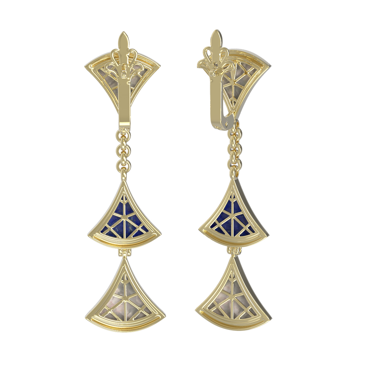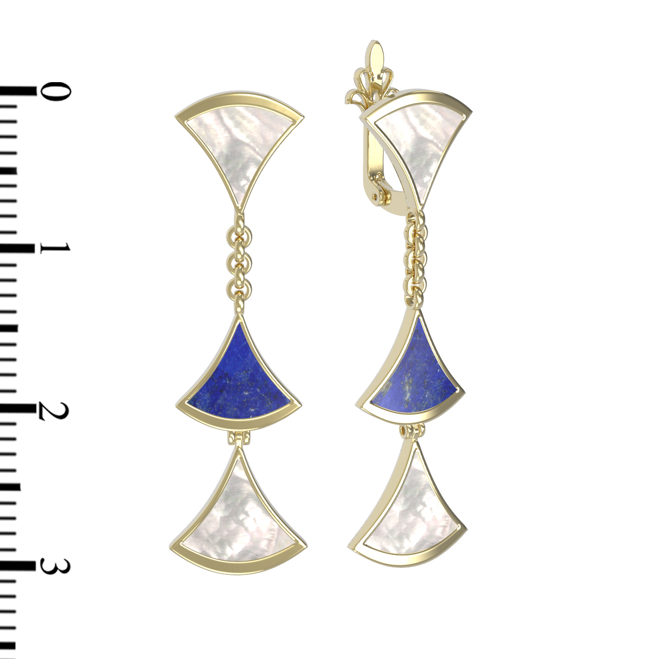 Серьги из лимонного золота 585 пробы c лазуритом и перламутром