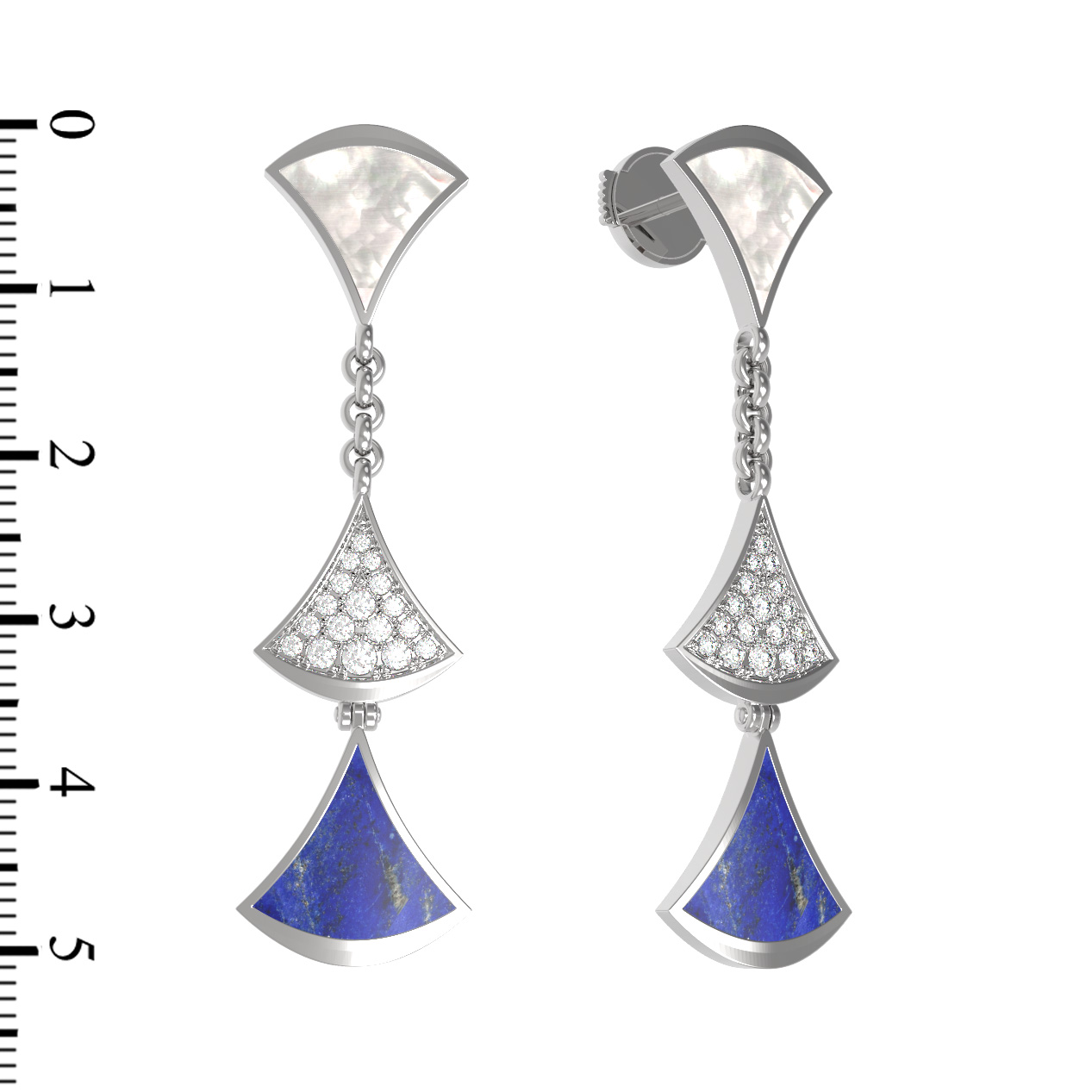 Серьги из белого золота c бриллиантами, лазуритом и перламутром