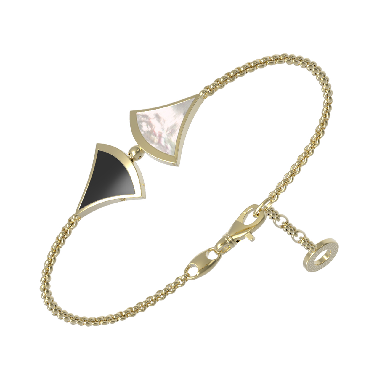 Браслет из лимонного золота 585 пробы c ониксом и перламутром