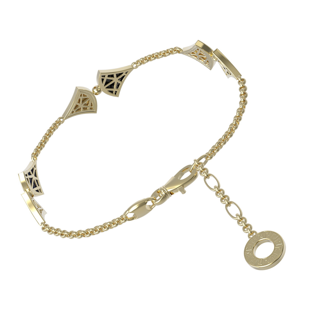 Элегантный браслет из коллекции De Luxe — Веер станет воплощением вашего безупречного вкуса. Ювелирное изделие выполнено из благородного лимонного золота 585 пробы, чей теплый оттенок придает аксессуару особое сияние и изысканность. Основной акцент украшения — утонченный дизайн в виде веера, который придает композиции динамику и глубину.