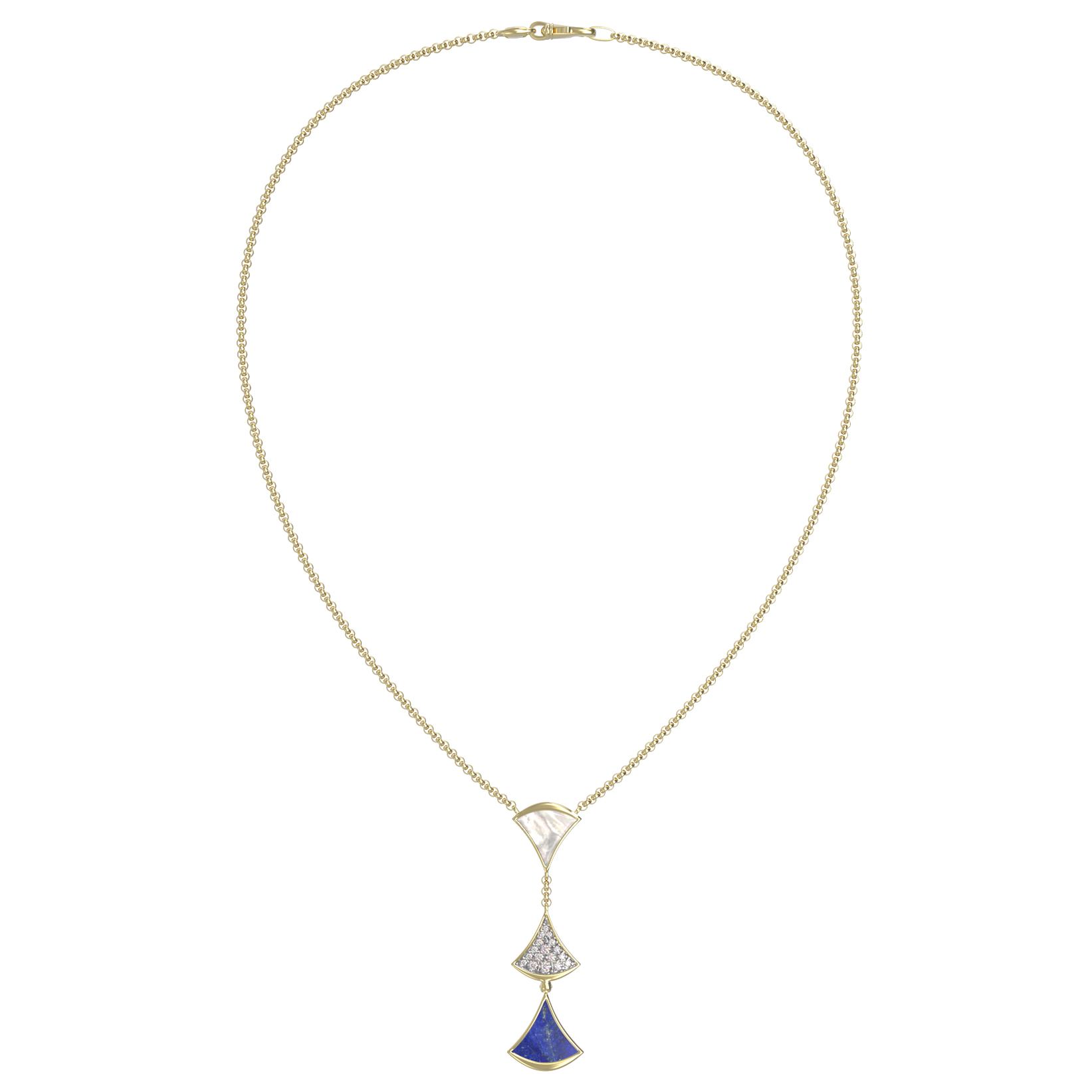 Колье из лимонного золота c бриллиантами, лазуритом и перламутром