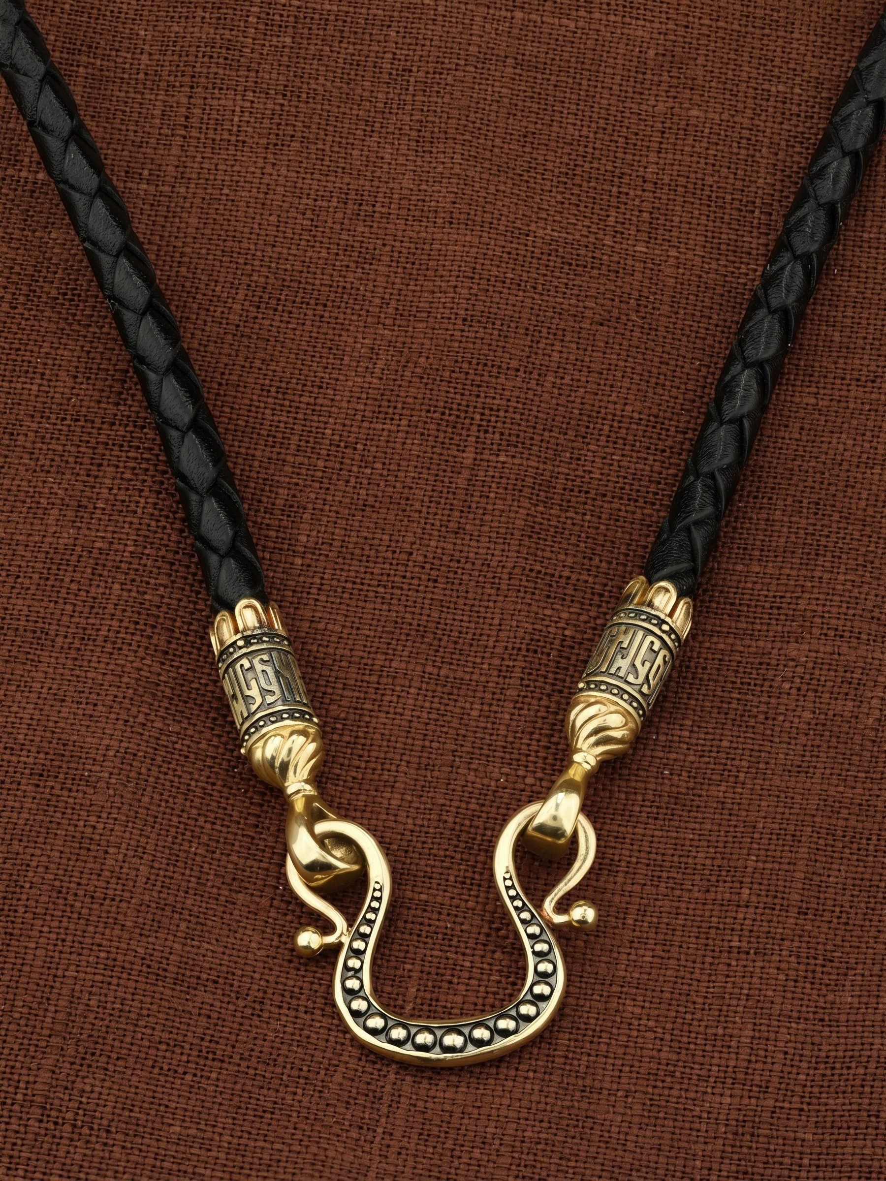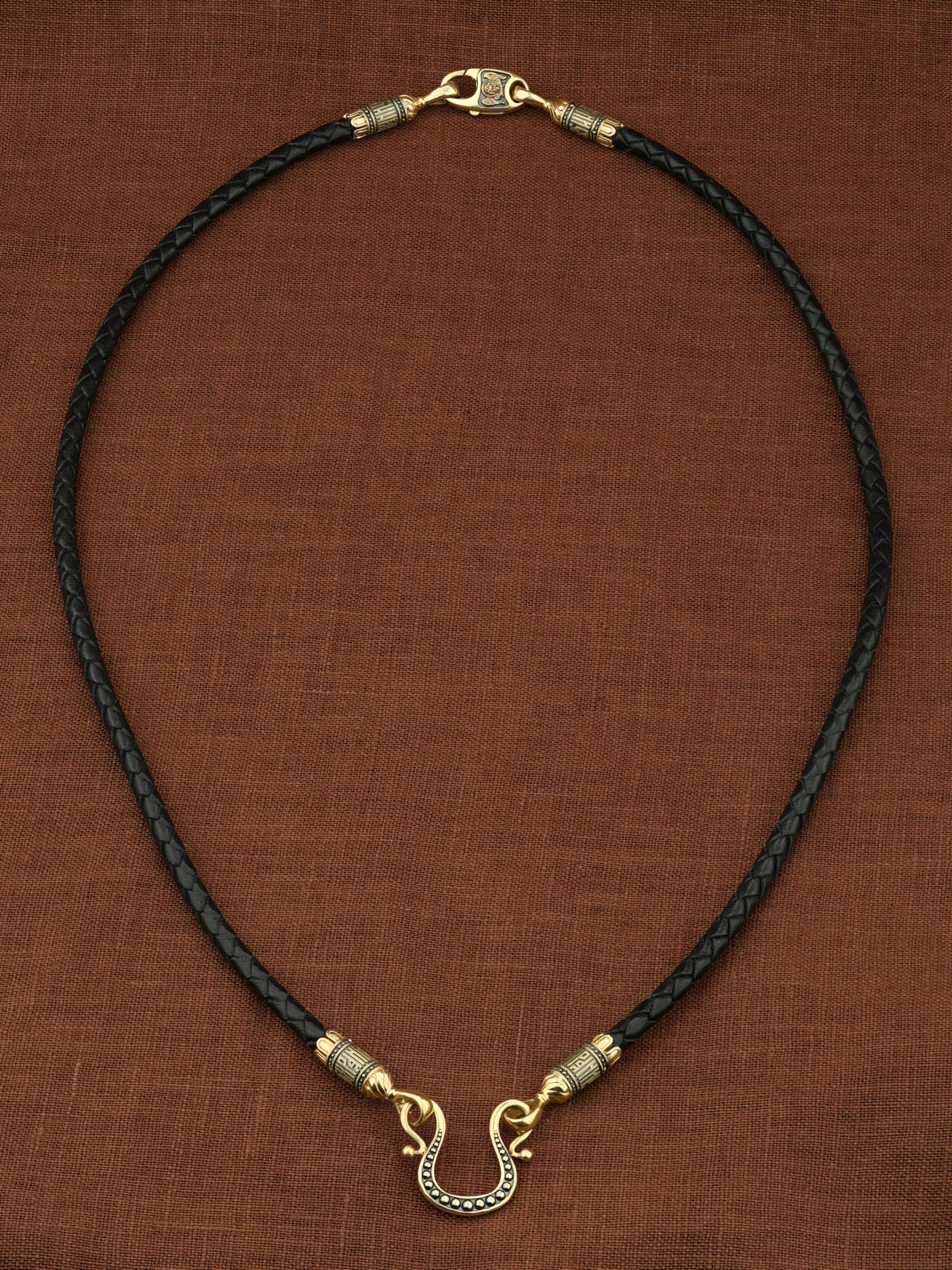 Гайтан из лимонного золота c кожаным шнурком